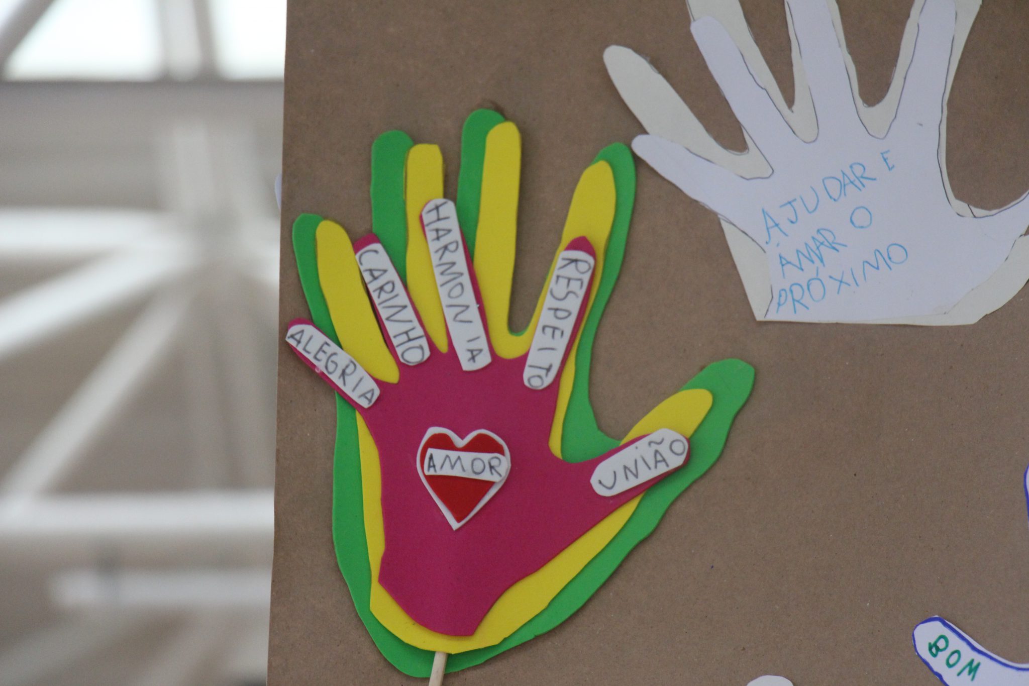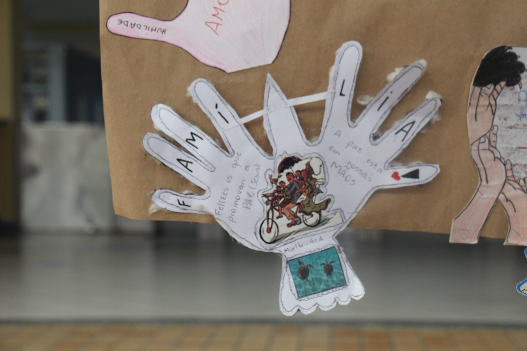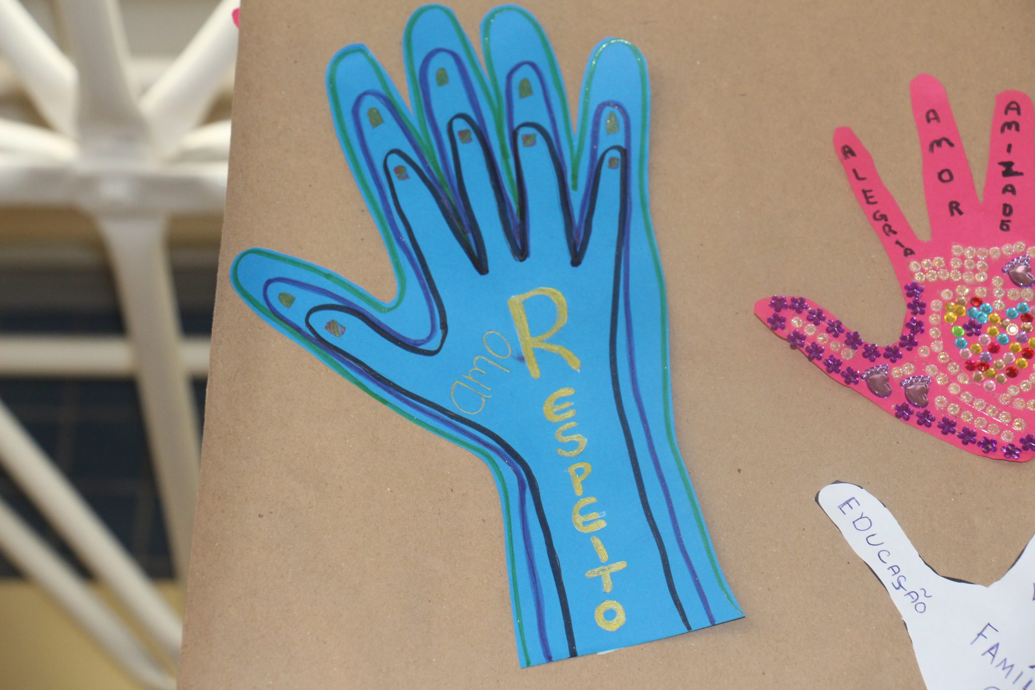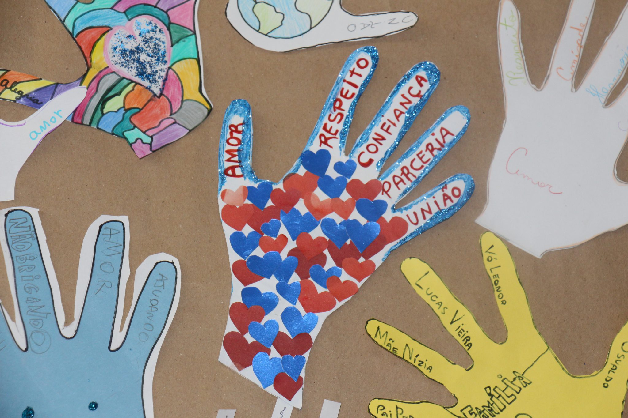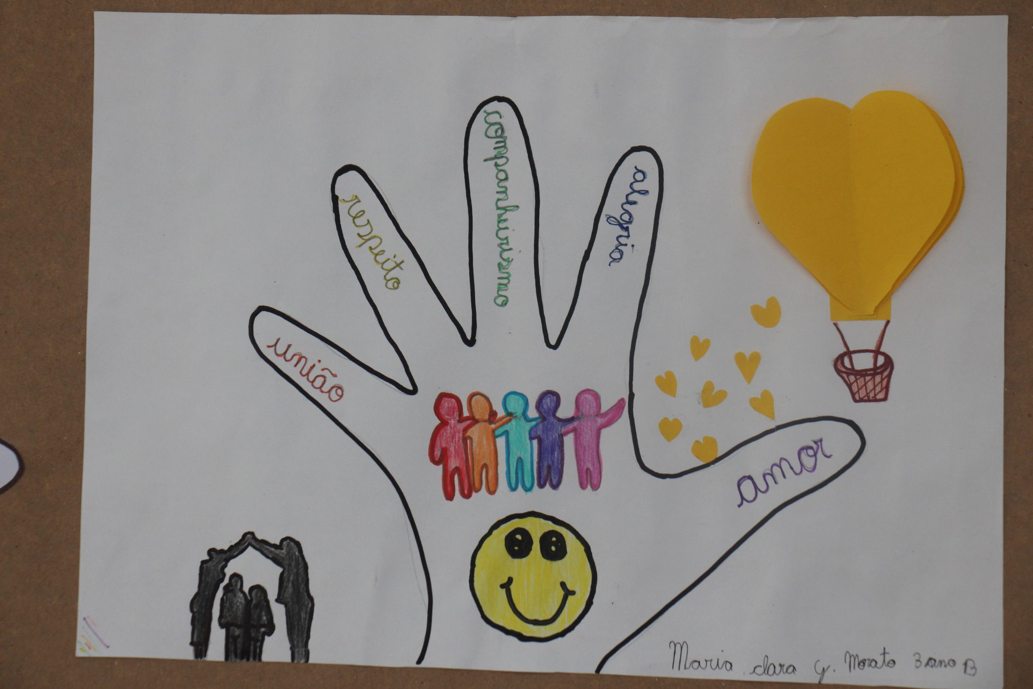 Que valores sua família acredita serem importantes para um mundo de paz? Será que não está nas mãos de cada um ajudar um pouquinho para que tenhamos uma sociedade mais fraterna? Foi a partir de indagações com essas, inspiradas no tema da CF 2018, Fraternidade e Superação da Violência, que as famílias dos alunos da Educação Infantil e do Ensino Fundamental 1 colocaram seus melhores sentimentos nas palmas de centenas de mãozinhas de papel que coloriram a entrada da escola no encerramento da Semana da Família.