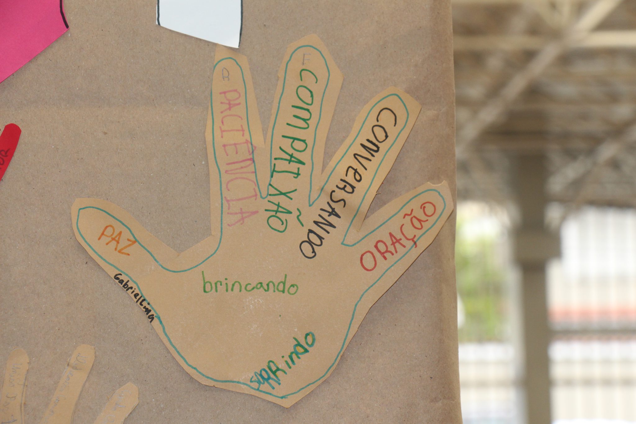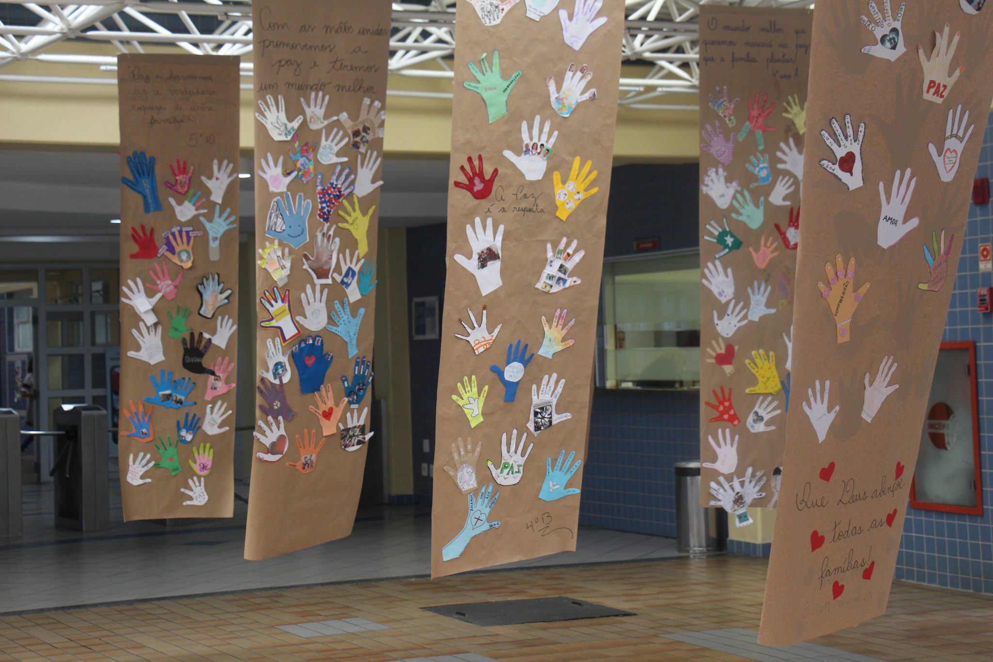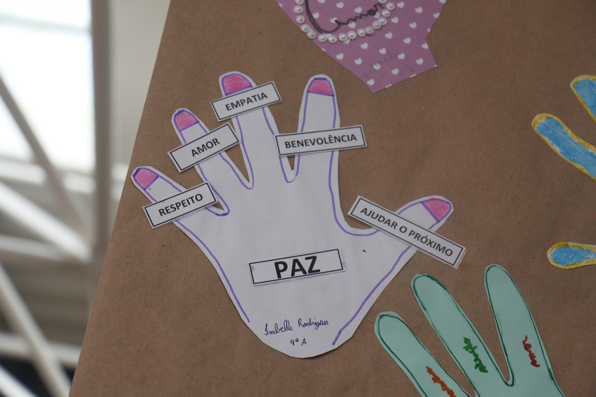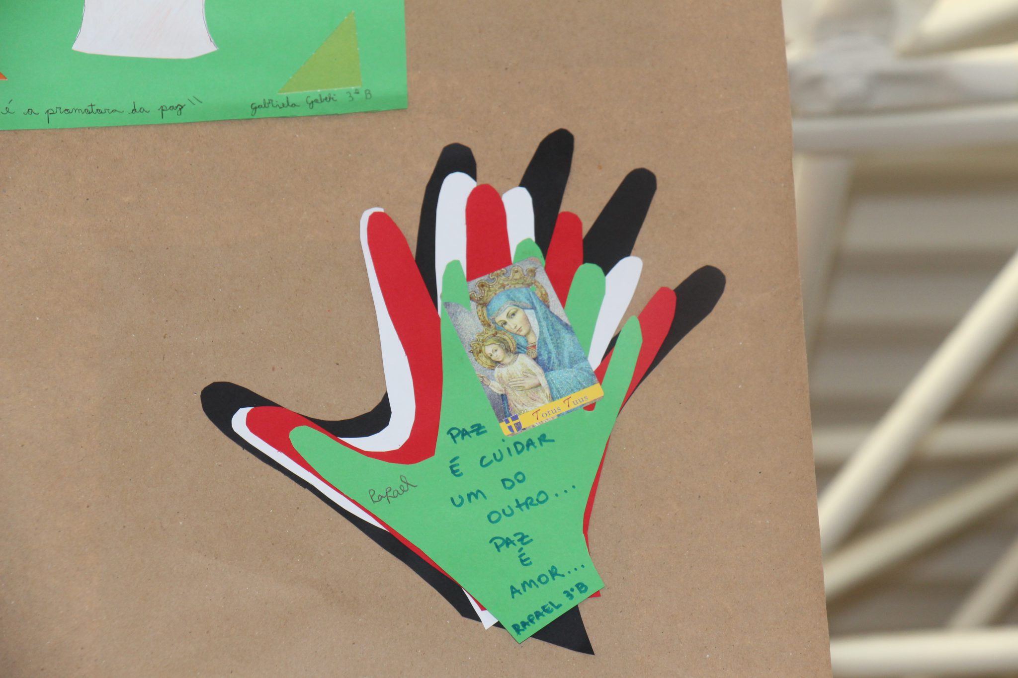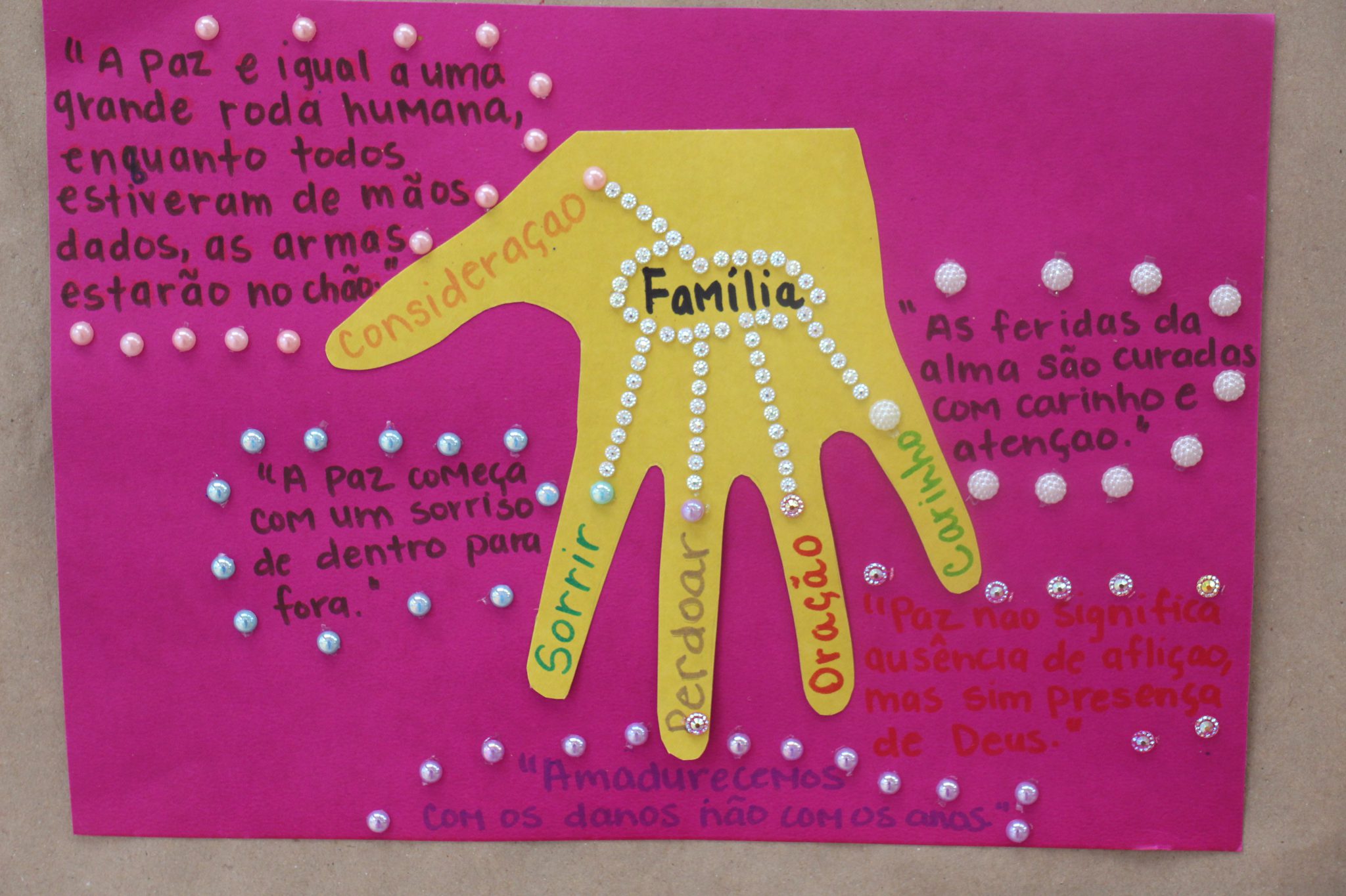 Que valores sua família acredita serem importantes para um mundo de paz? Será que não está nas mãos de cada um ajudar um pouquinho para que tenhamos uma sociedade mais fraterna? Foi a partir de indagações com essas, inspiradas no tema da CF 2018, Fraternidade e Superação da Violência, que as famílias dos alunos da Educação Infantil e do Ensino Fundamental 1 colocaram seus melhores sentimentos nas palmas de centenas de mãozinhas de papel que coloriram a entrada da escola no encerramento da Semana da Família.