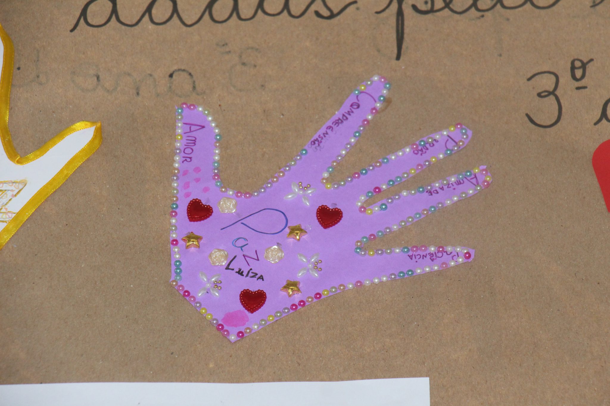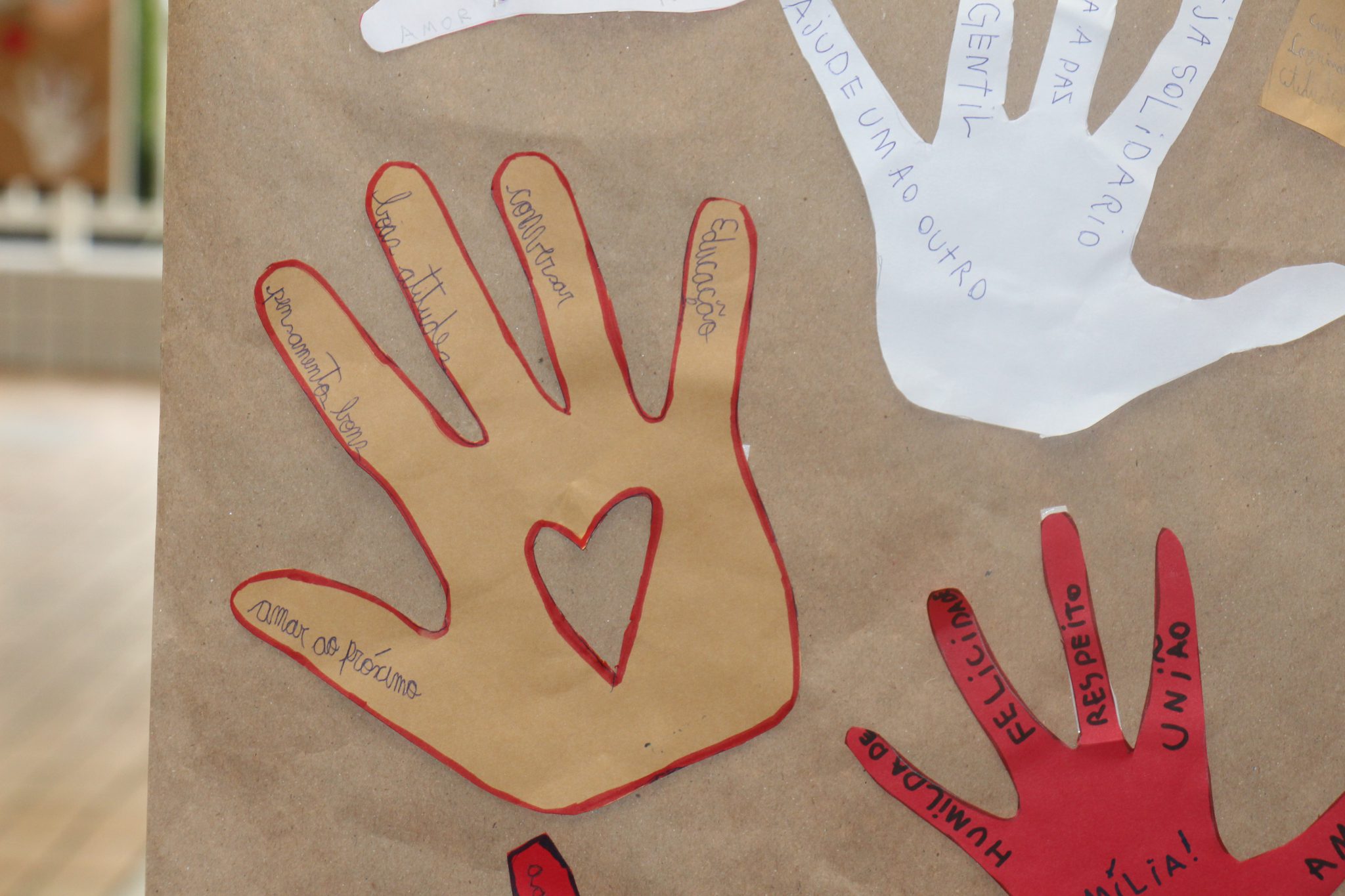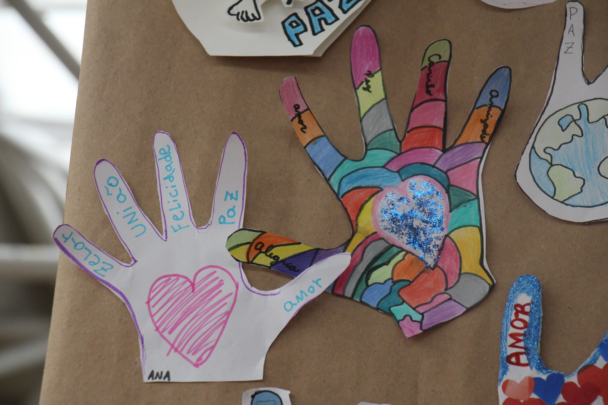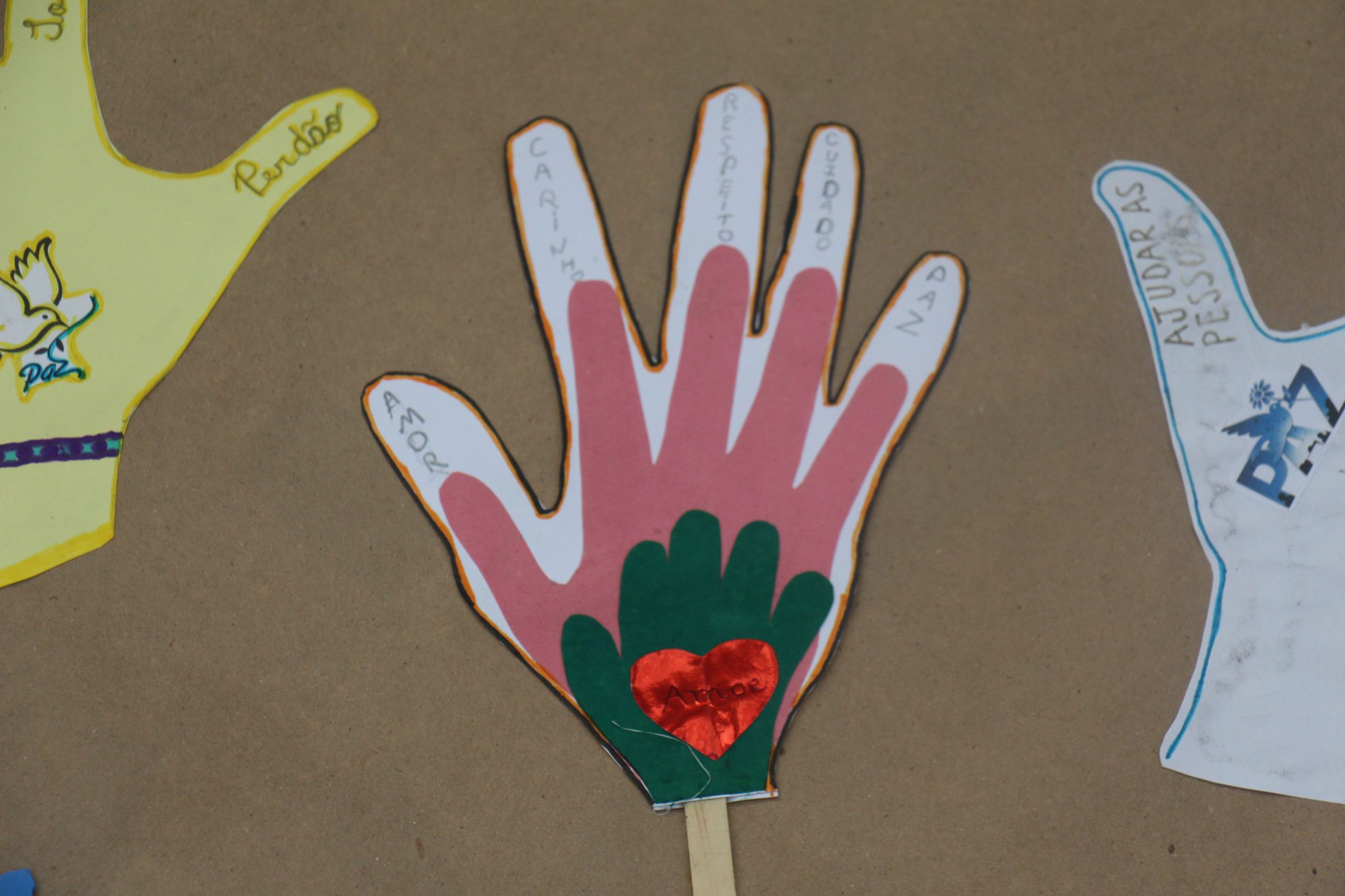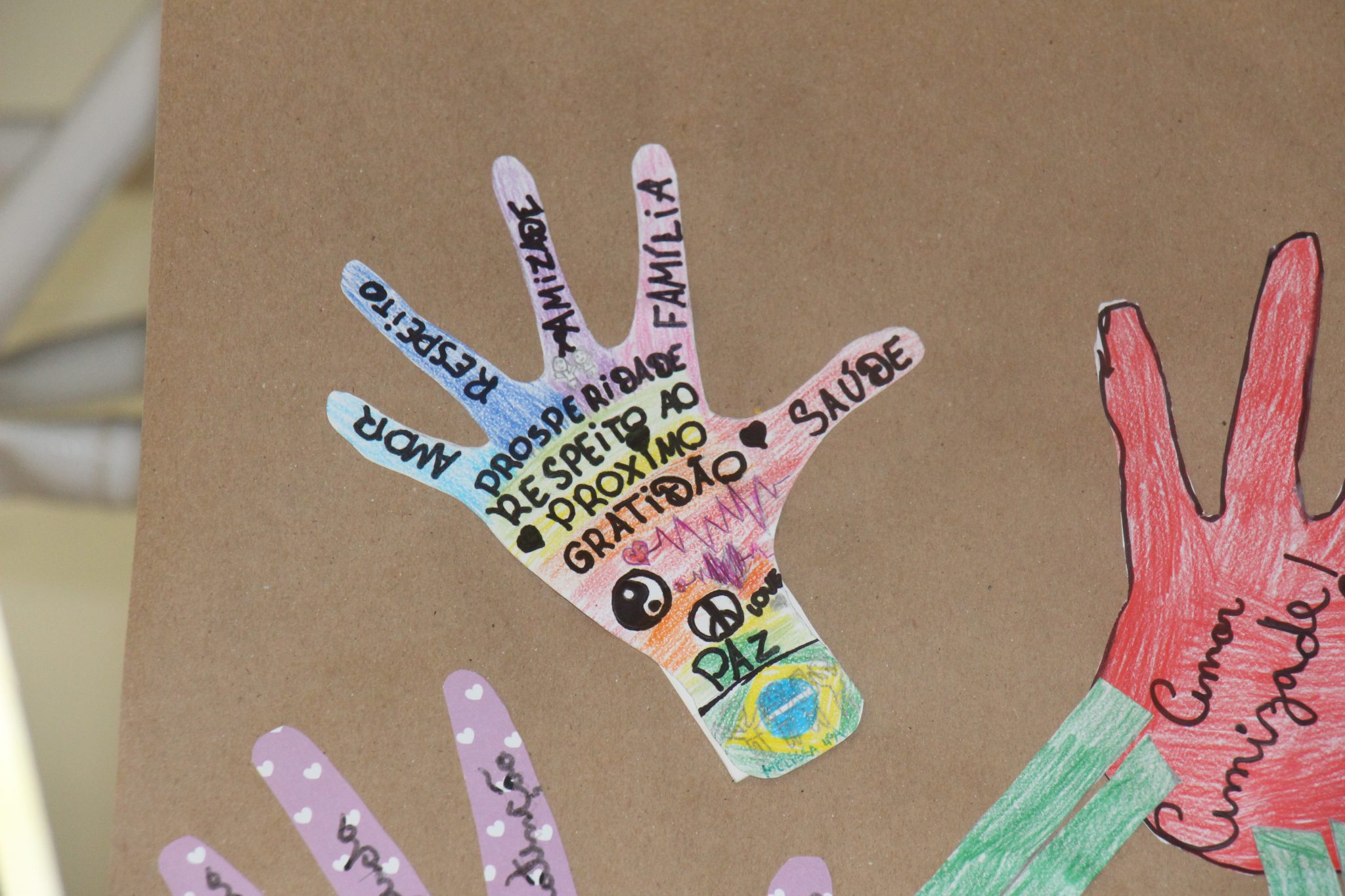 Que valores sua família acredita serem importantes para um mundo de paz? Será que não está nas mãos de cada um ajudar um pouquinho para que tenhamos uma sociedade mais fraterna? Foi a partir de indagações com essas, inspiradas no tema da CF 2018, Fraternidade e Superação da Violência, que as famílias dos alunos da Educação Infantil e do Ensino Fundamental 1 colocaram seus melhores sentimentos nas palmas de centenas de mãozinhas de papel que coloriram a entrada da escola no encerramento da Semana da Família.