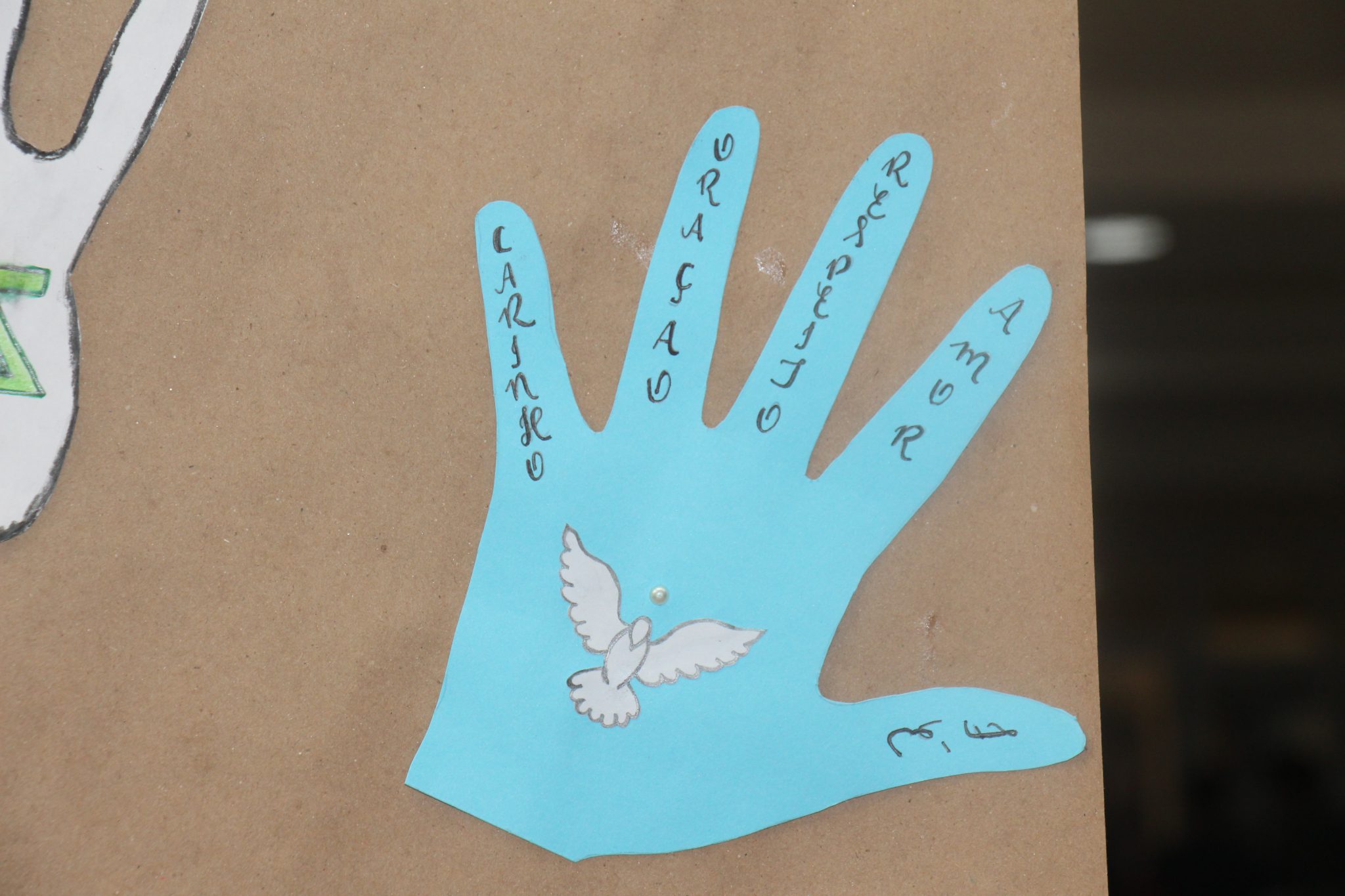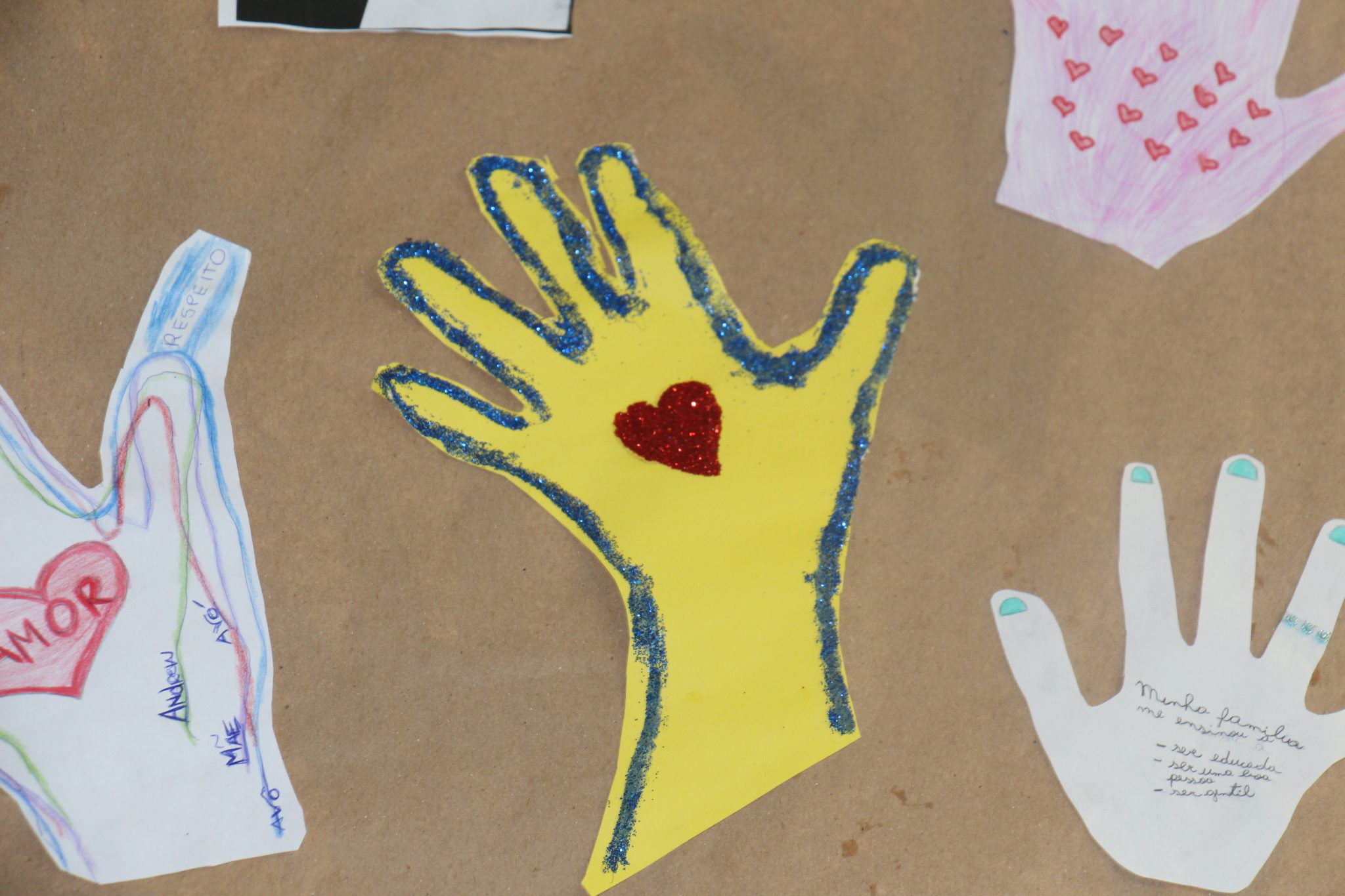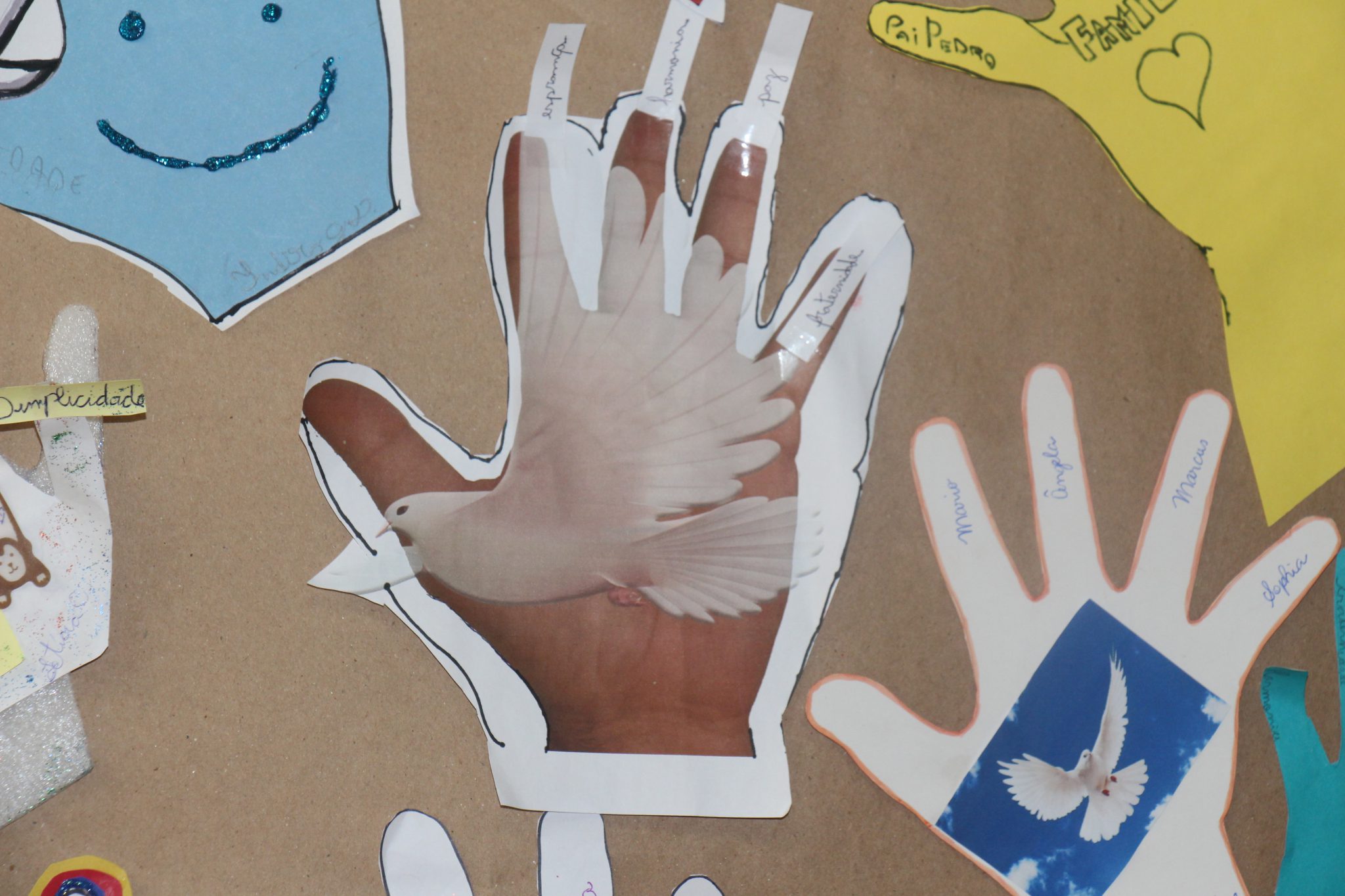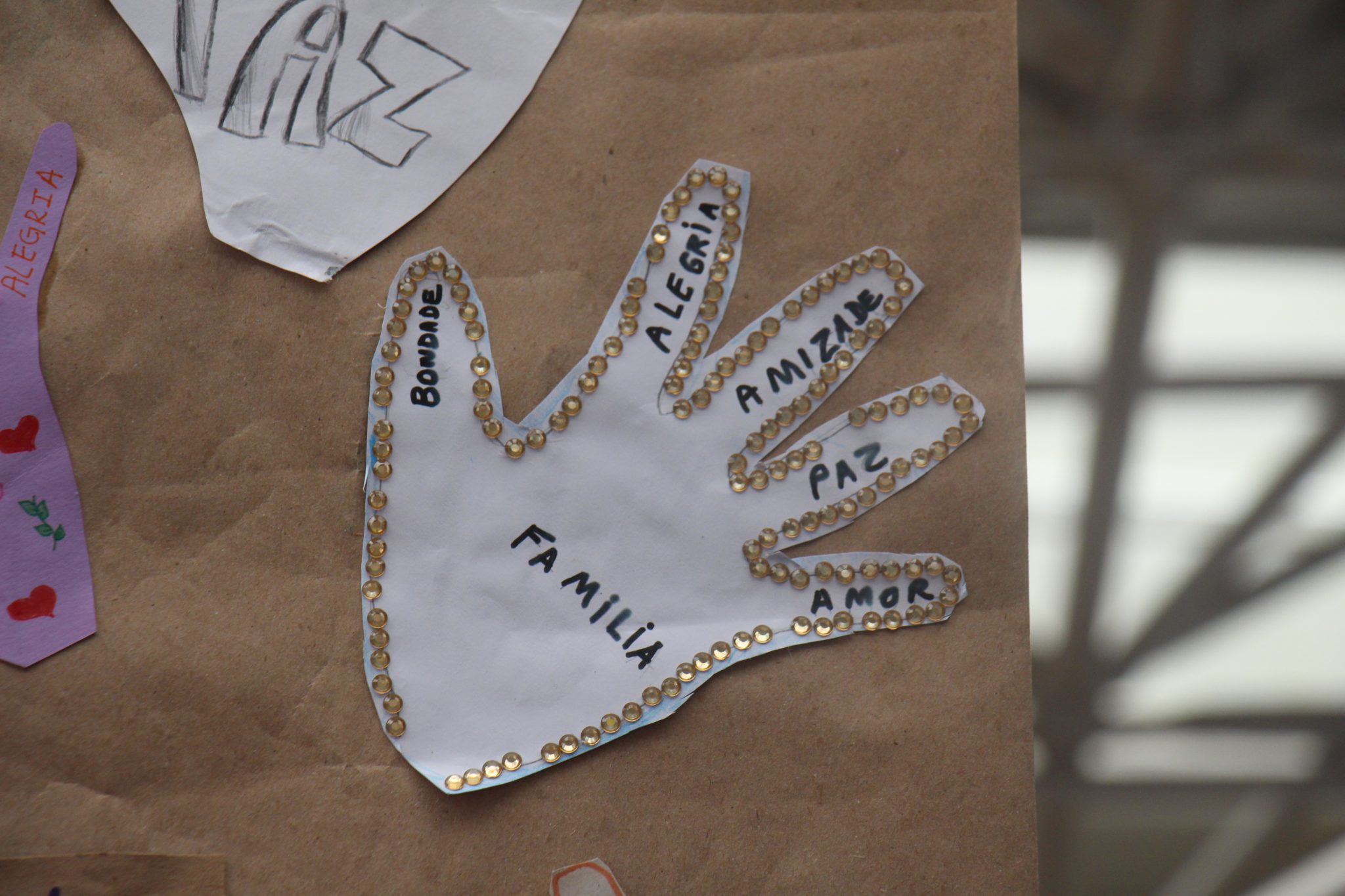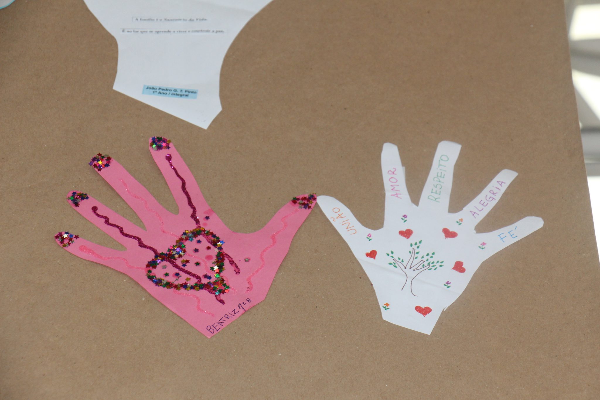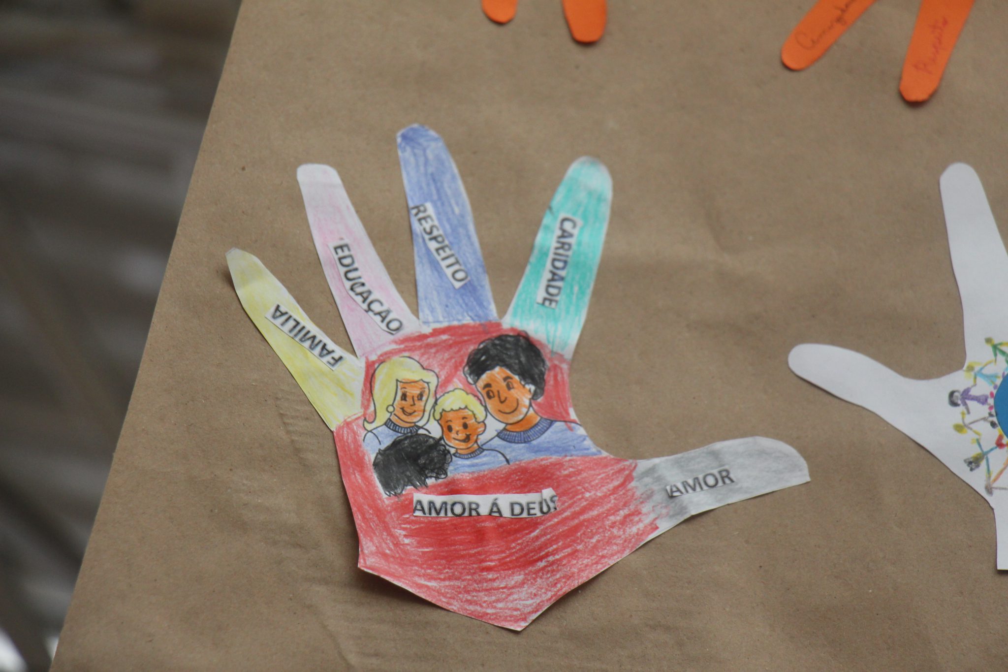 Que valores sua família acredita serem importantes para um mundo de paz? Será que não está nas mãos de cada um ajudar um pouquinho para que tenhamos uma sociedade mais fraterna? Foi a partir de indagações com essas, inspiradas no tema da CF 2018, Fraternidade e Superação da Violência, que as famílias dos alunos da Educação Infantil e do Ensino Fundamental 1 colocaram seus melhores sentimentos nas palmas de centenas de mãozinhas de papel que coloriram a entrada da escola no encerramento da Semana da Família.