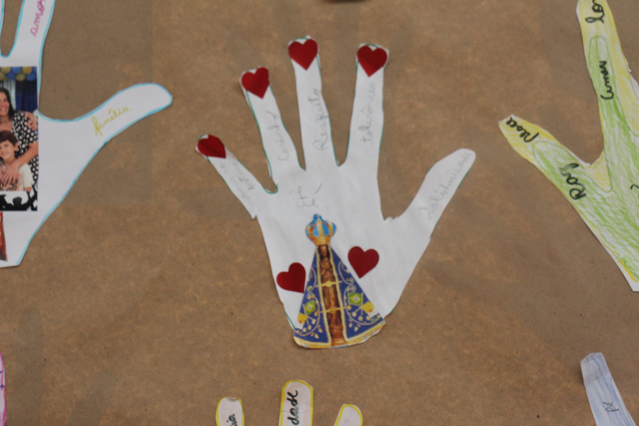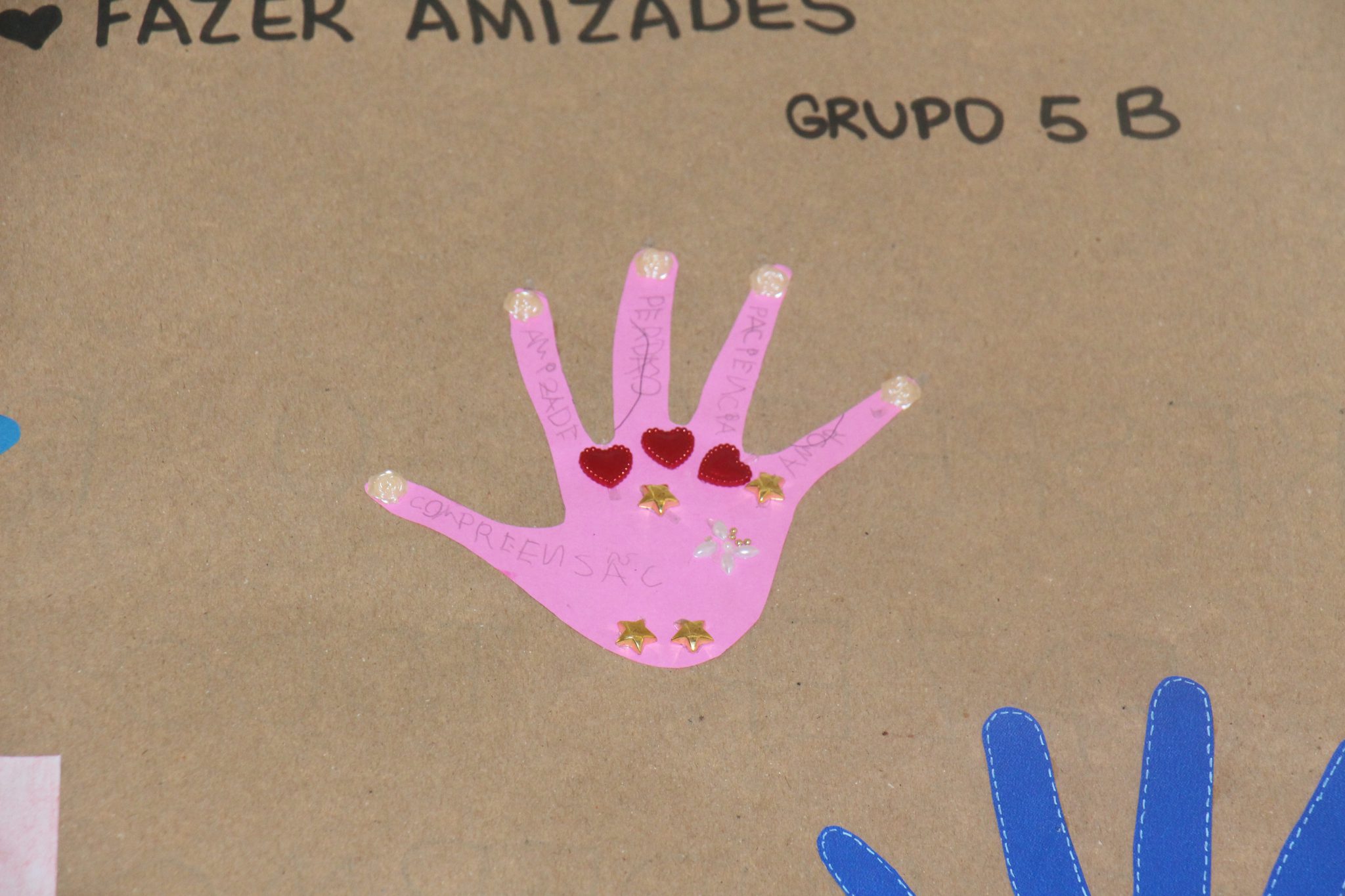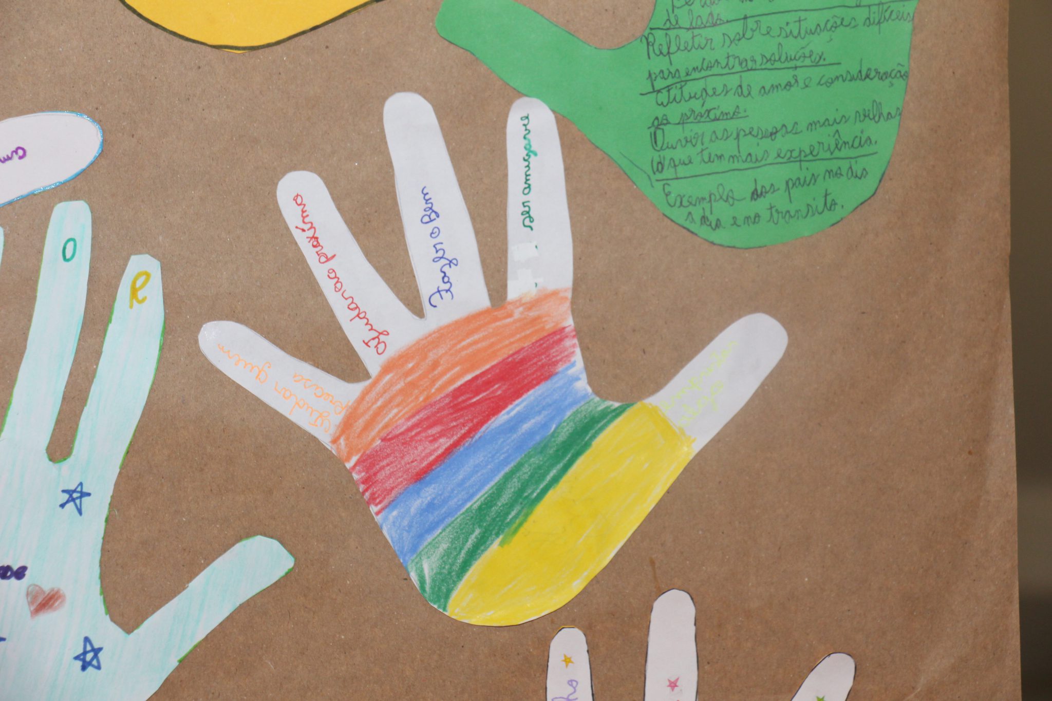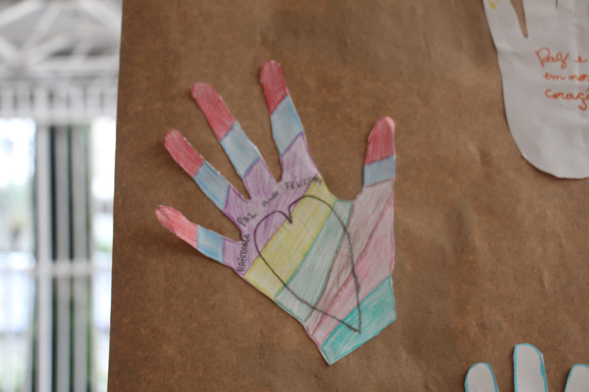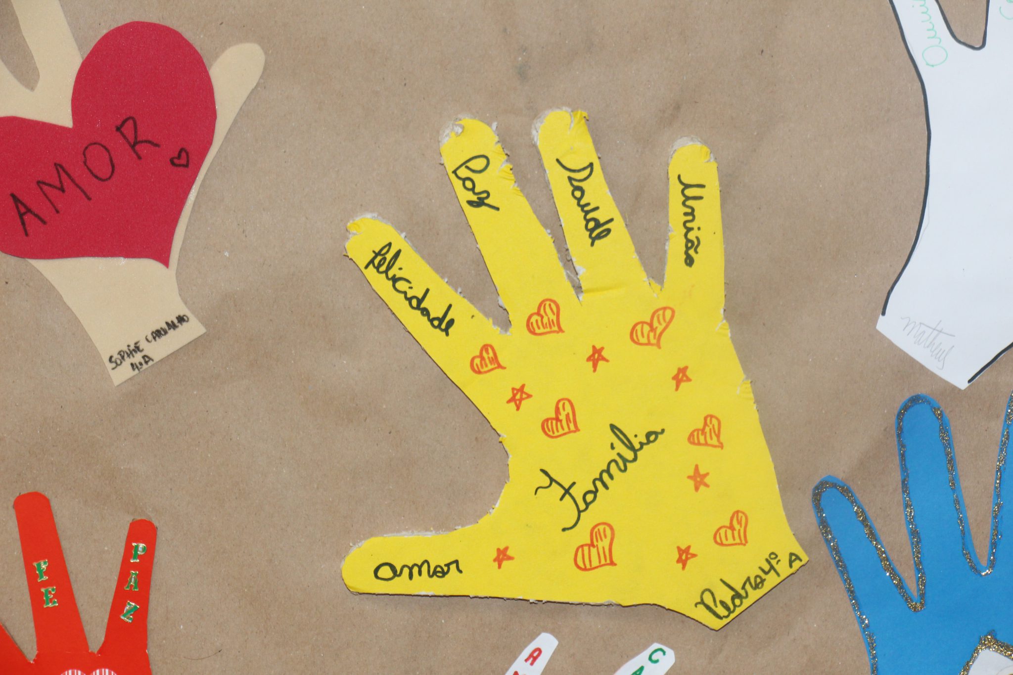 Que valores sua família acredita serem importantes para um mundo de paz? Será que não está nas mãos de cada um ajudar um pouquinho para que tenhamos uma sociedade mais fraterna? Foi a partir de indagações com essas, inspiradas no tema da CF 2018, Fraternidade e Superação da Violência, que as famílias dos alunos da Educação Infantil e do Ensino Fundamental 1 colocaram seus melhores sentimentos nas palmas de centenas de mãozinhas de papel que coloriram a entrada da escola no encerramento da Semana da Família.