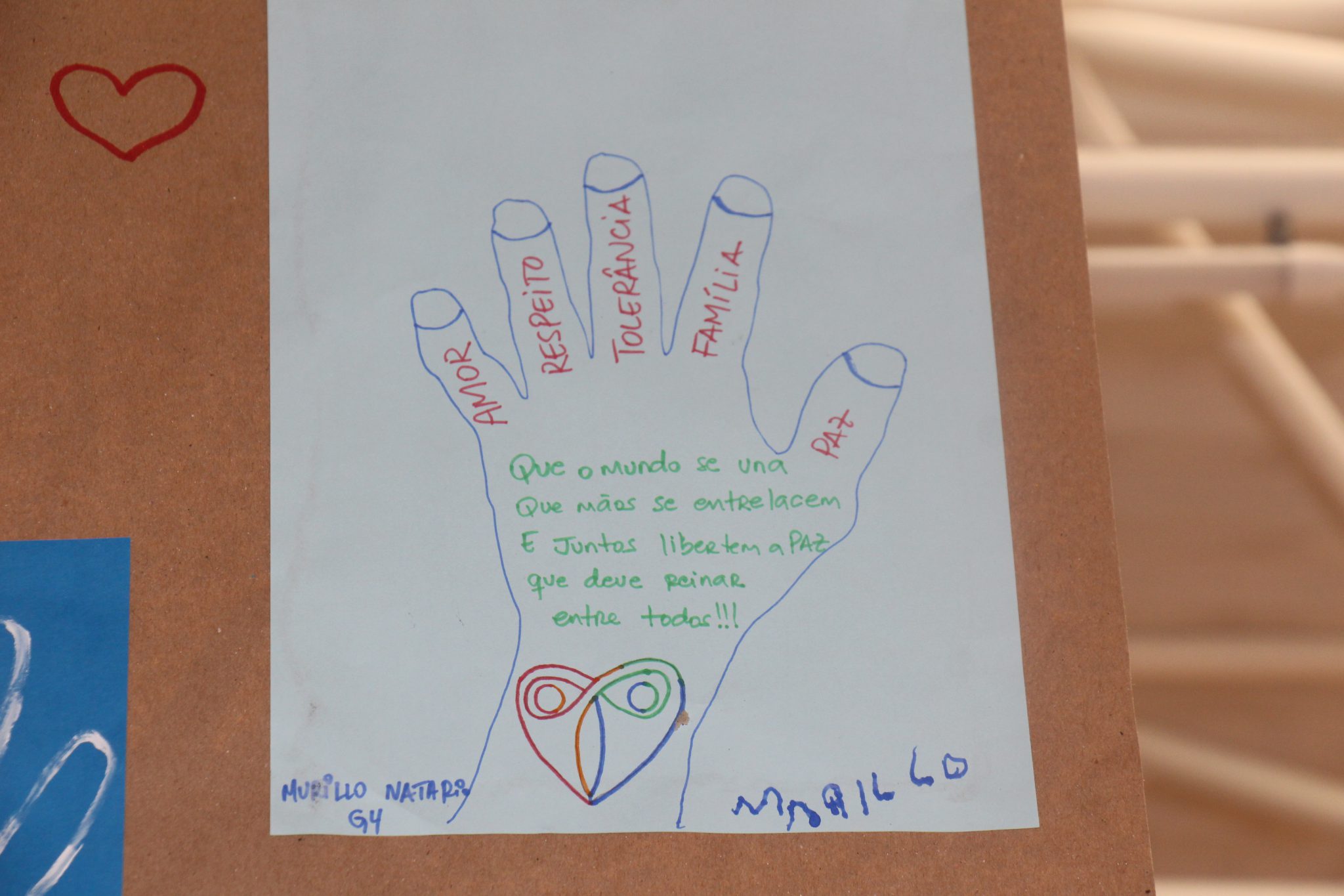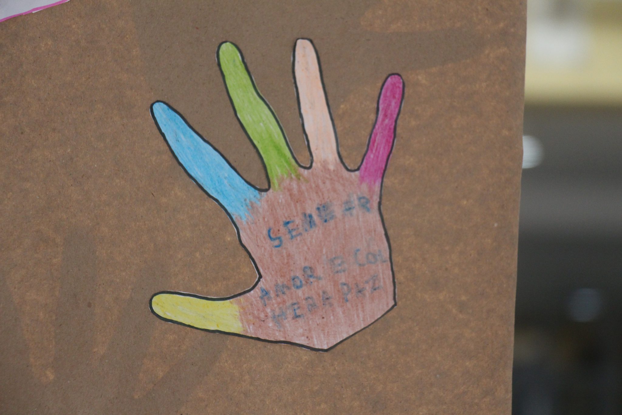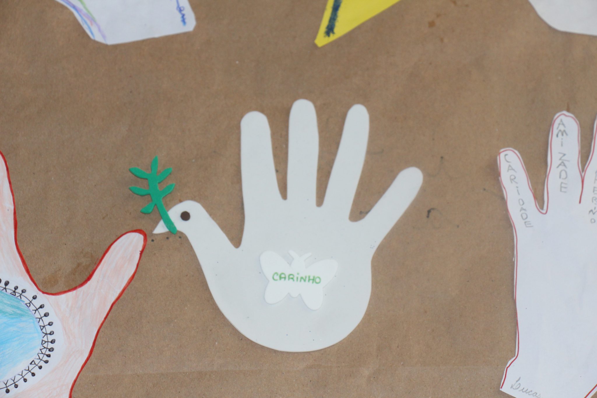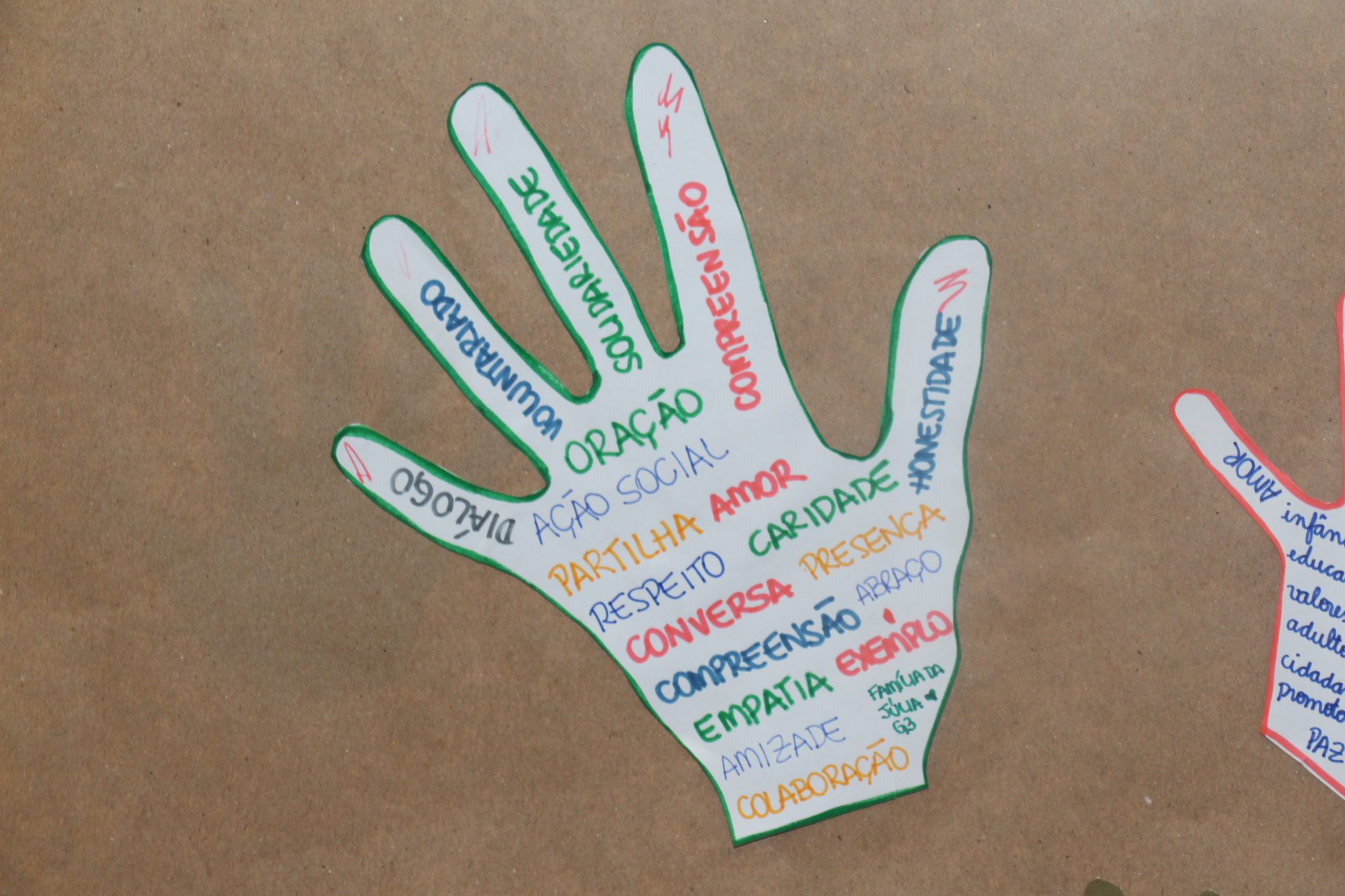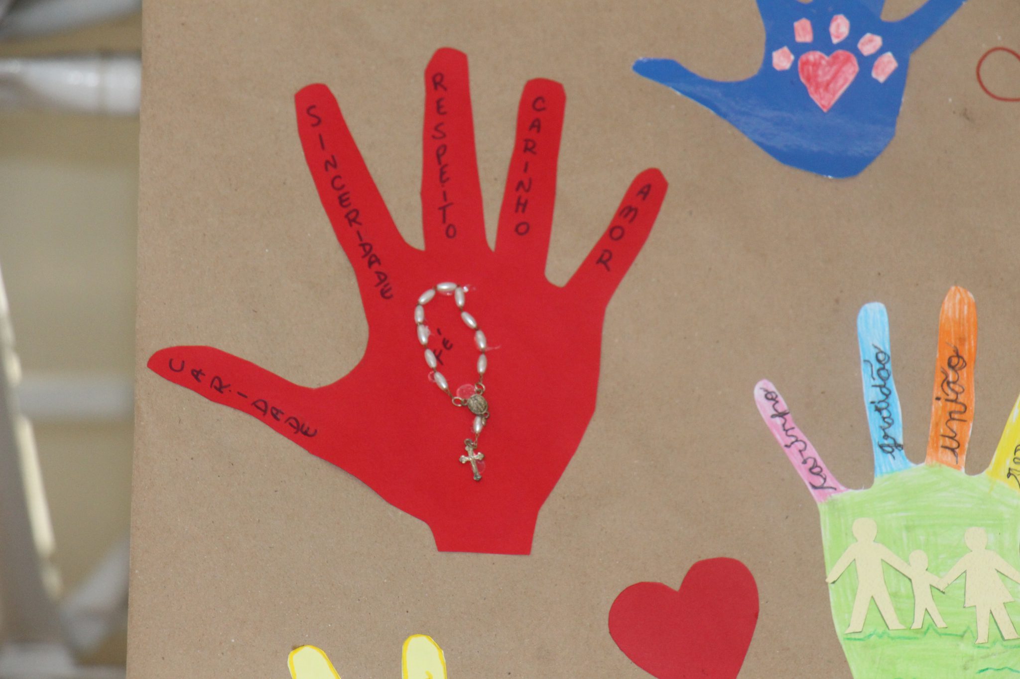 Que valores sua família acredita serem importantes para um mundo de paz? Será que não está nas mãos de cada um ajudar um pouquinho para que tenhamos uma sociedade mais fraterna? Foi a partir de indagações com essas, inspiradas no tema da CF 2018, Fraternidade e Superação da Violência, que as famílias dos alunos da Educação Infantil e do Ensino Fundamental 1 colocaram seus melhores sentimentos nas palmas de centenas de mãozinhas de papel que coloriram a entrada da escola no encerramento da Semana da Família.