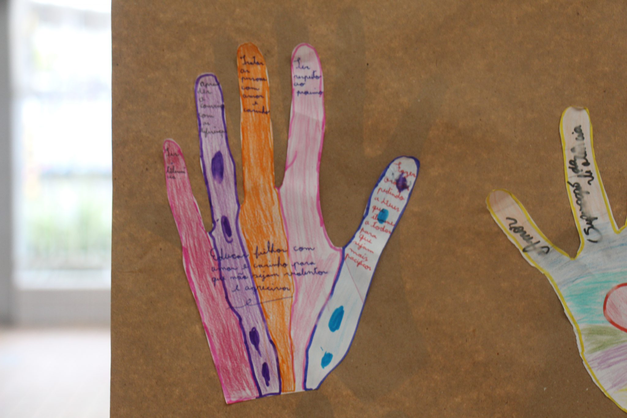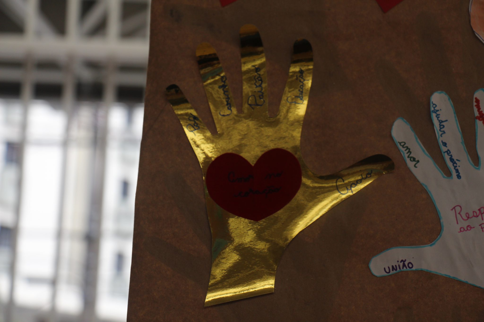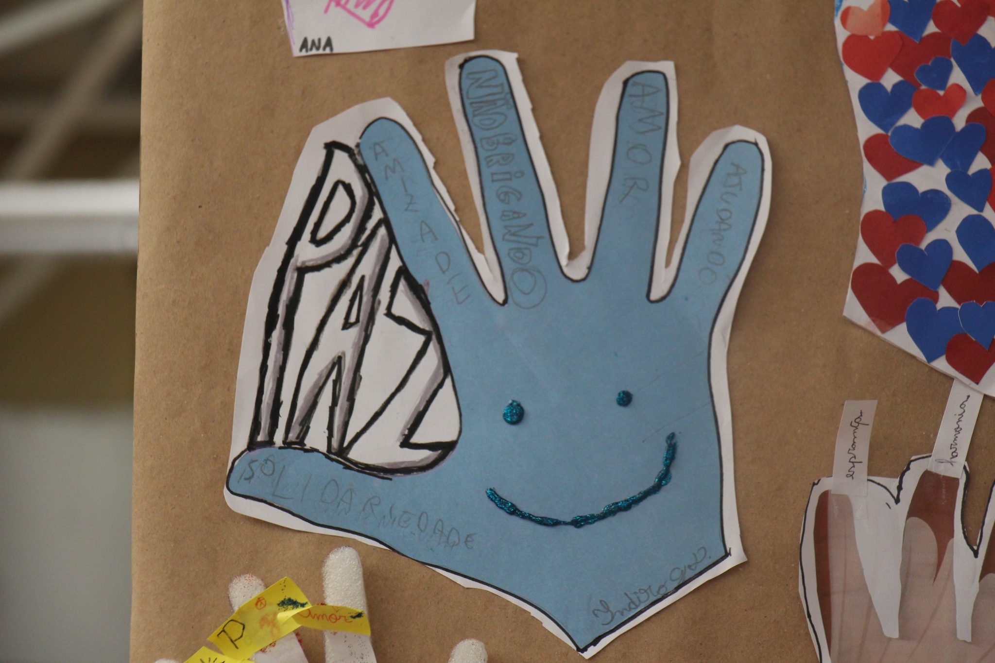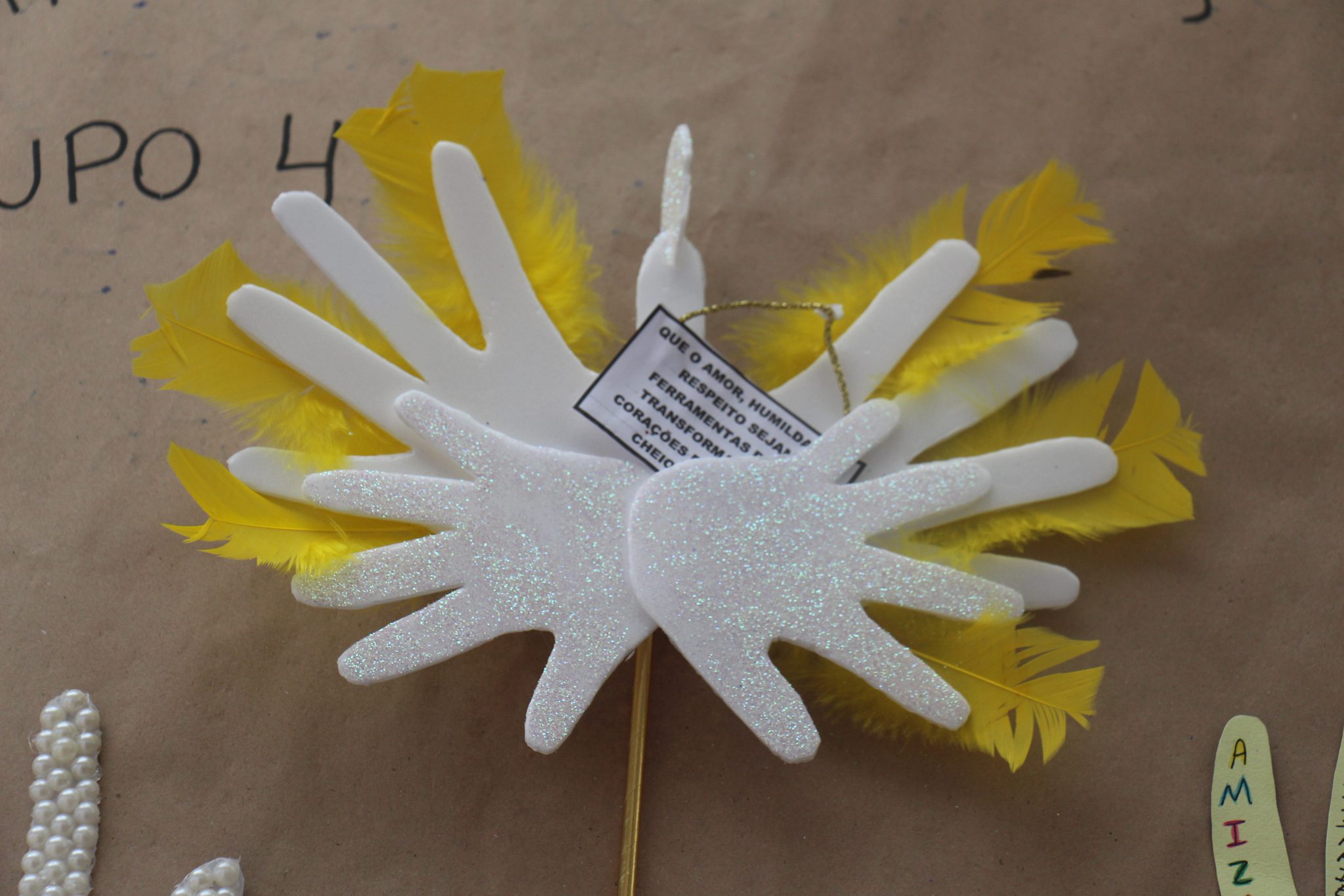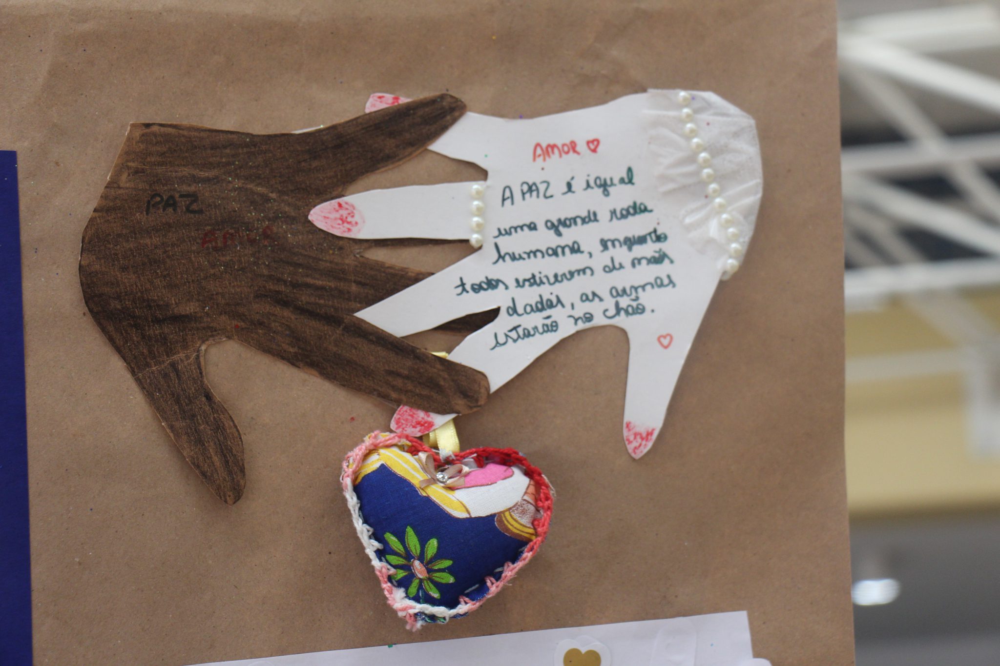 Que valores sua família acredita serem importantes para um mundo de paz? Será que não está nas mãos de cada um ajudar um pouquinho para que tenhamos uma sociedade mais fraterna? Foi a partir de indagações com essas, inspiradas no tema da CF 2018, Fraternidade e Superação da Violência, que as famílias dos alunos da Educação Infantil e do Ensino Fundamental 1 colocaram seus melhores sentimentos nas palmas de centenas de mãozinhas de papel que coloriram a entrada da escola no encerramento da Semana da Família.