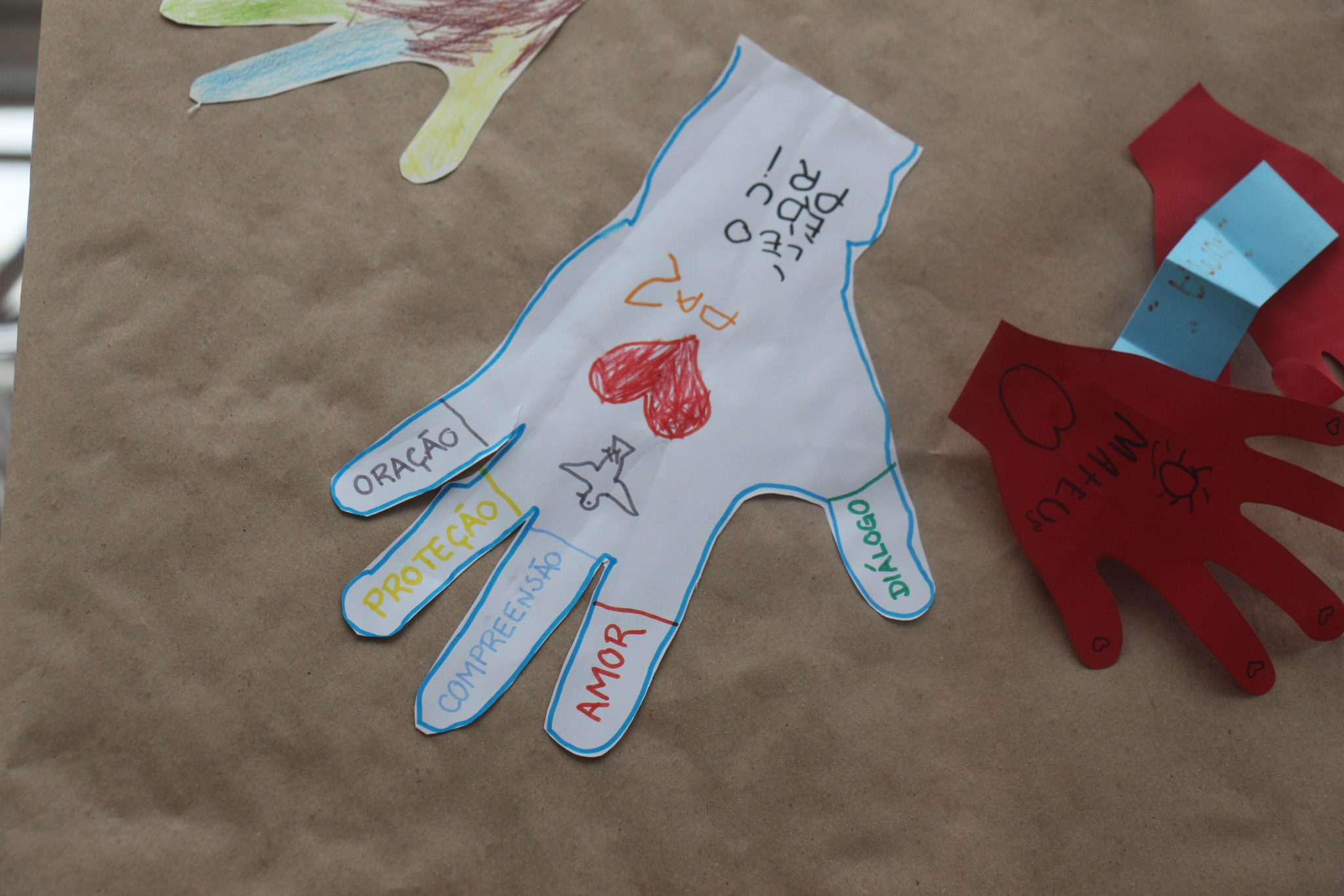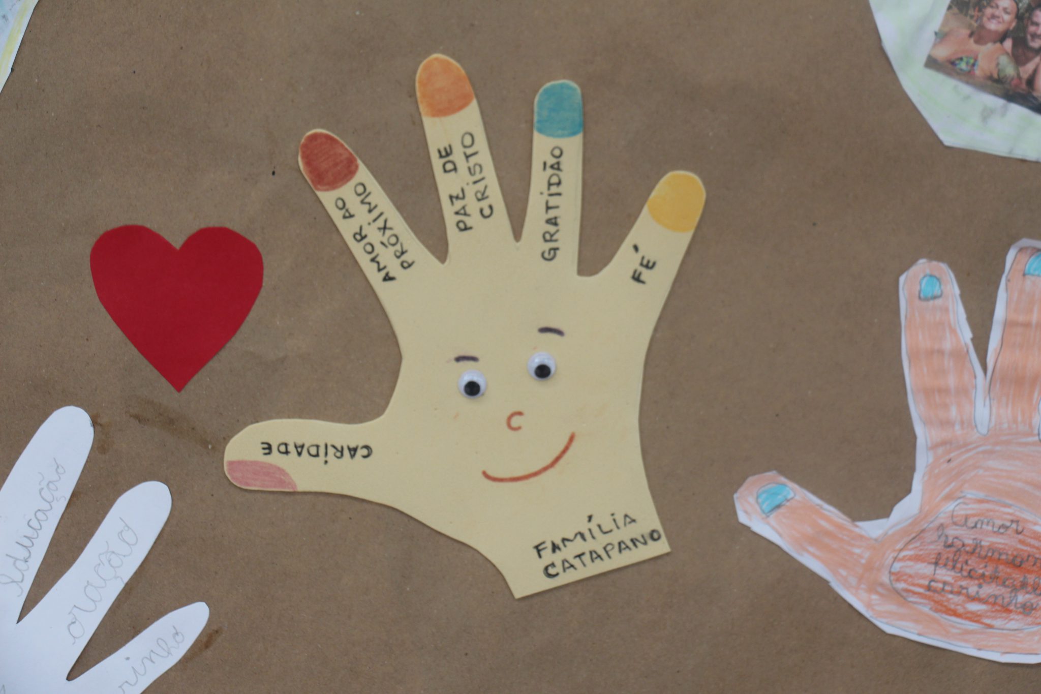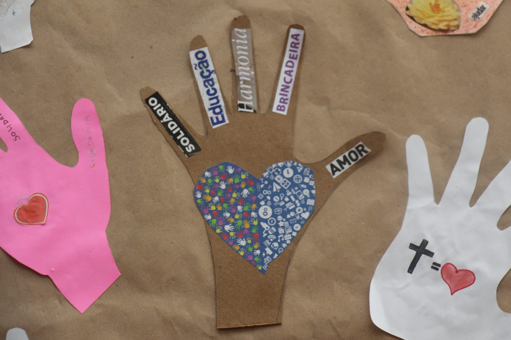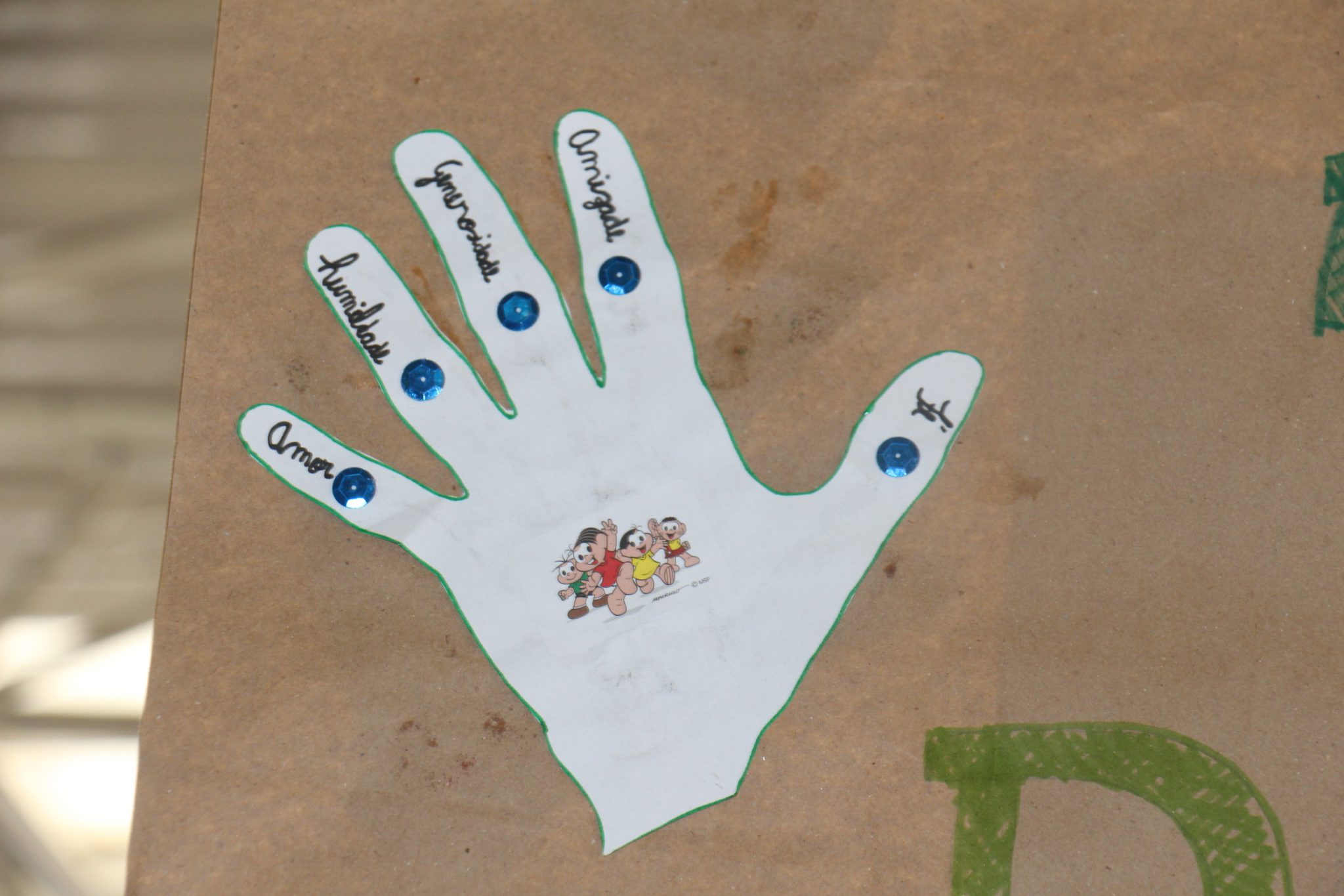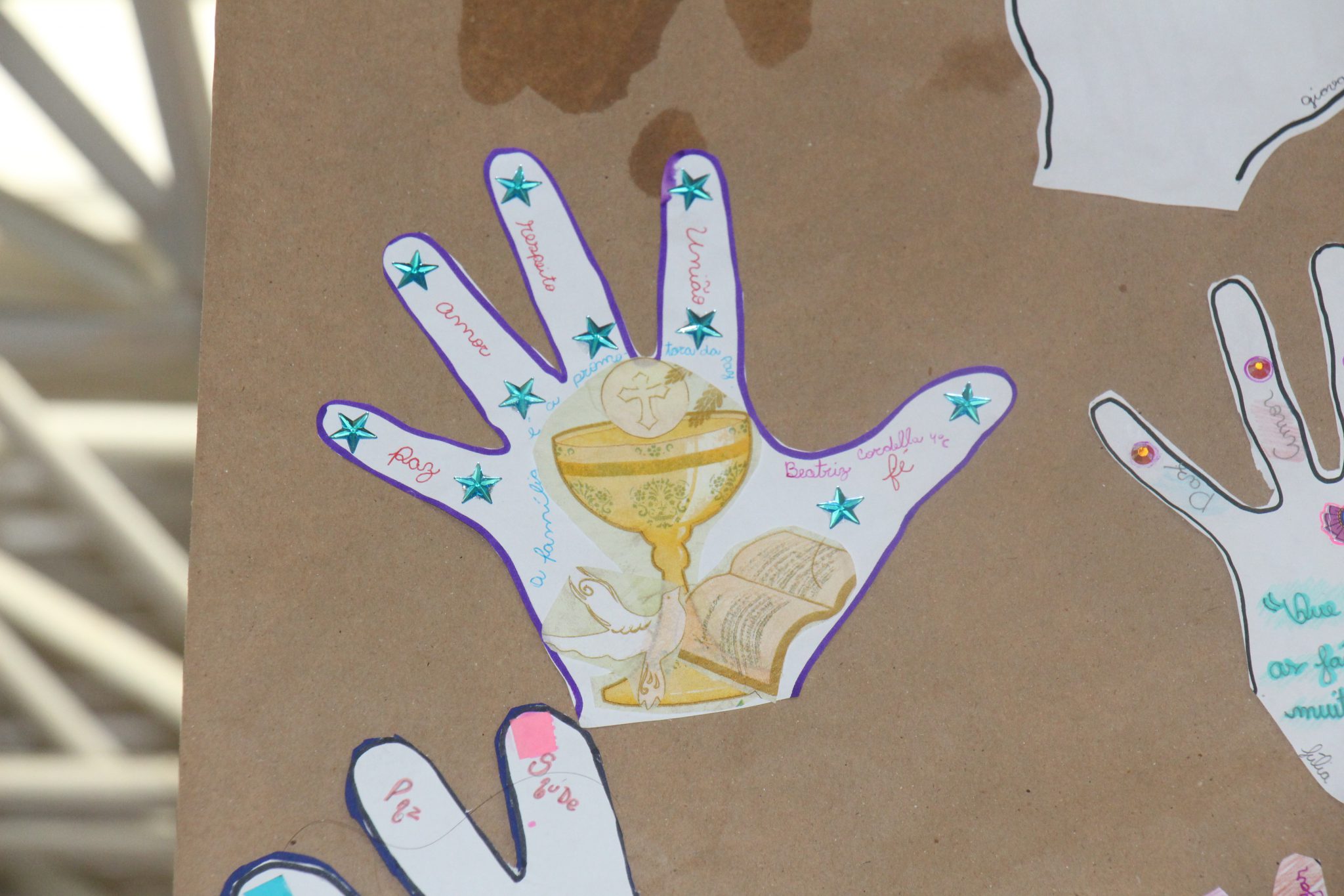 Que valores sua família acredita serem importantes para um mundo de paz? Será que não está nas mãos de cada um ajudar um pouquinho para que tenhamos uma sociedade mais fraterna? Foi a partir de indagações com essas, inspiradas no tema da CF 2018, Fraternidade e Superação da Violência, que as famílias dos alunos da Educação Infantil e do Ensino Fundamental 1 colocaram seus melhores sentimentos nas palmas de centenas de mãozinhas de papel que coloriram a entrada da escola no encerramento da Semana da Família.