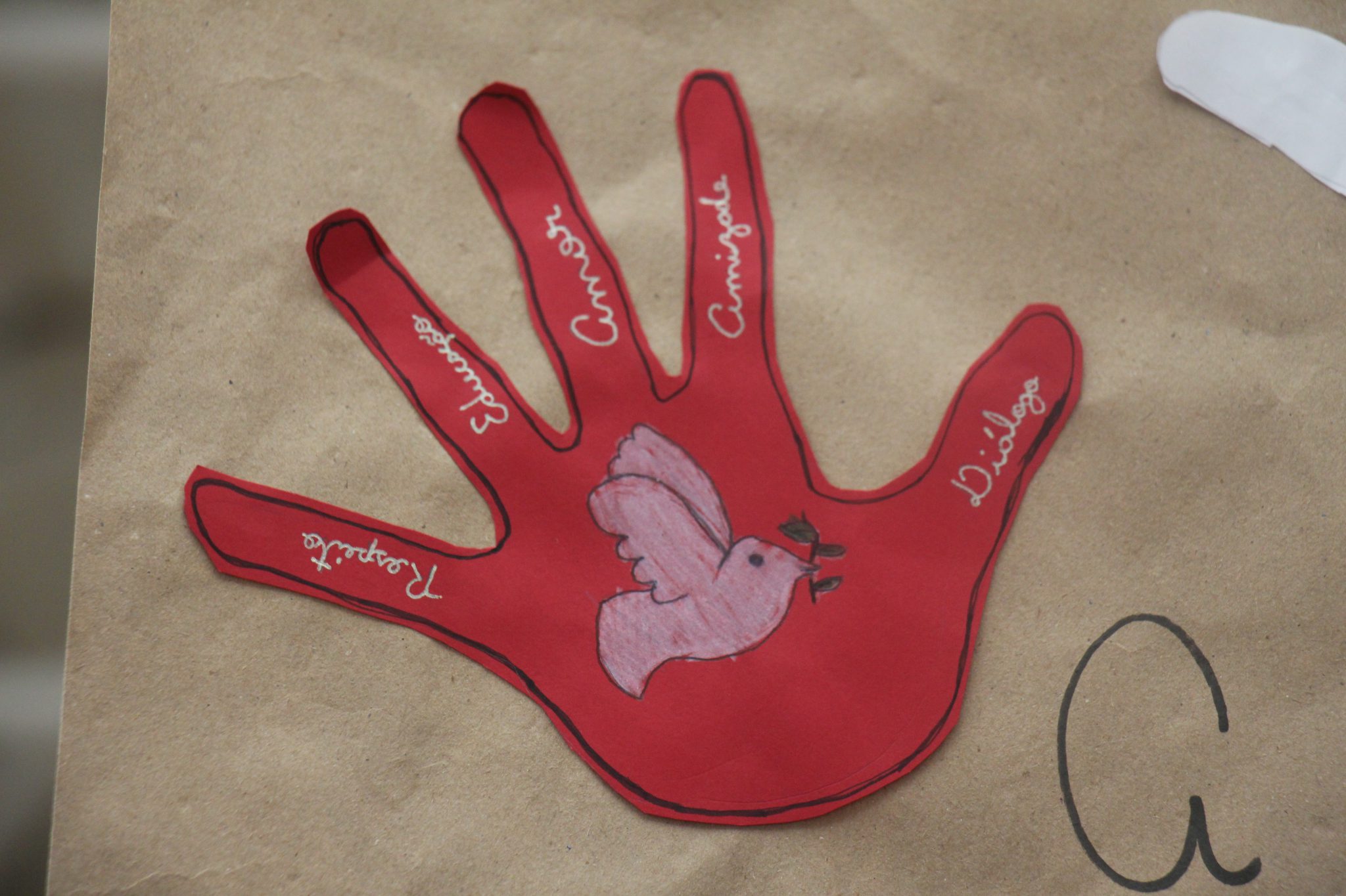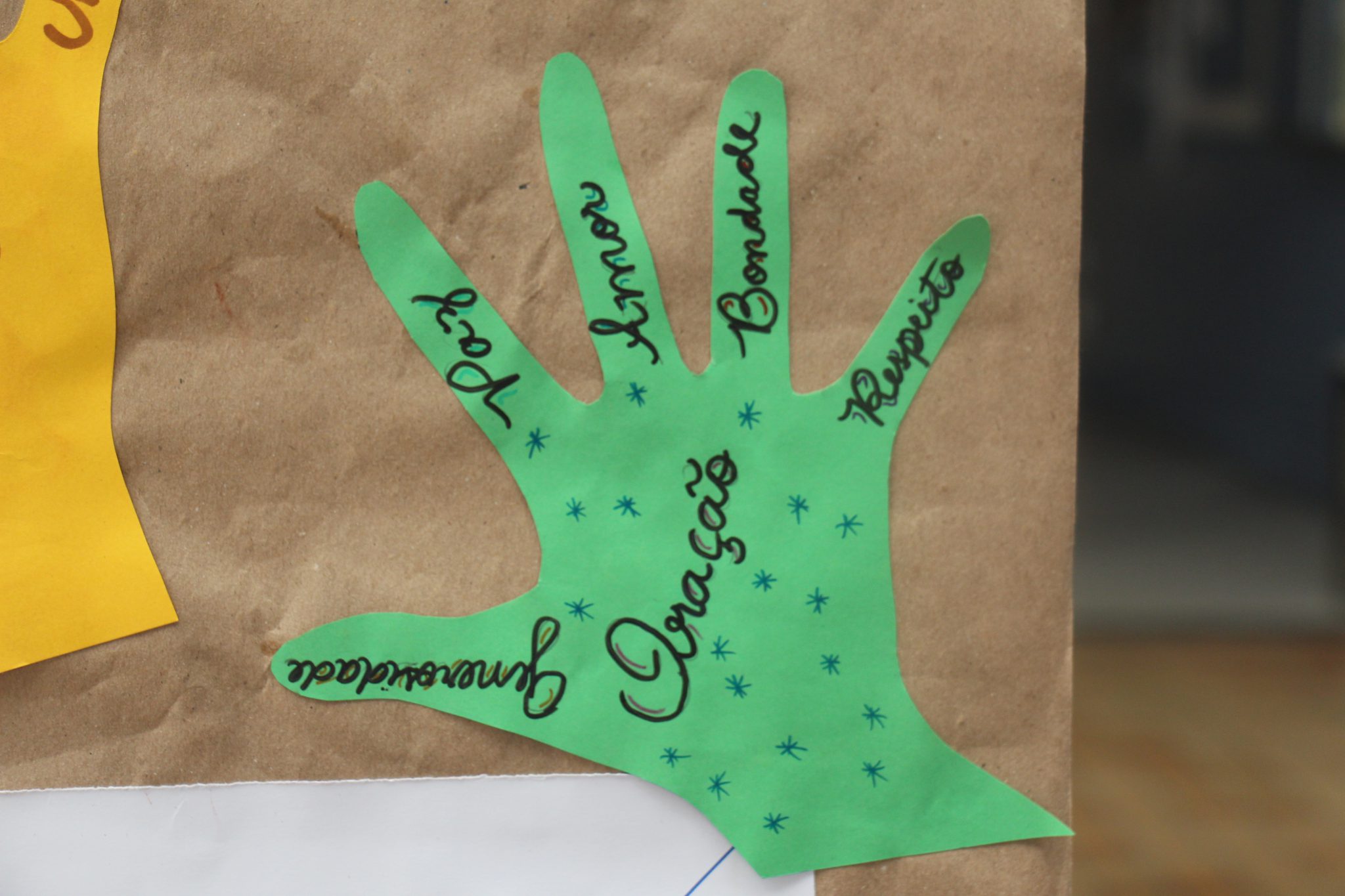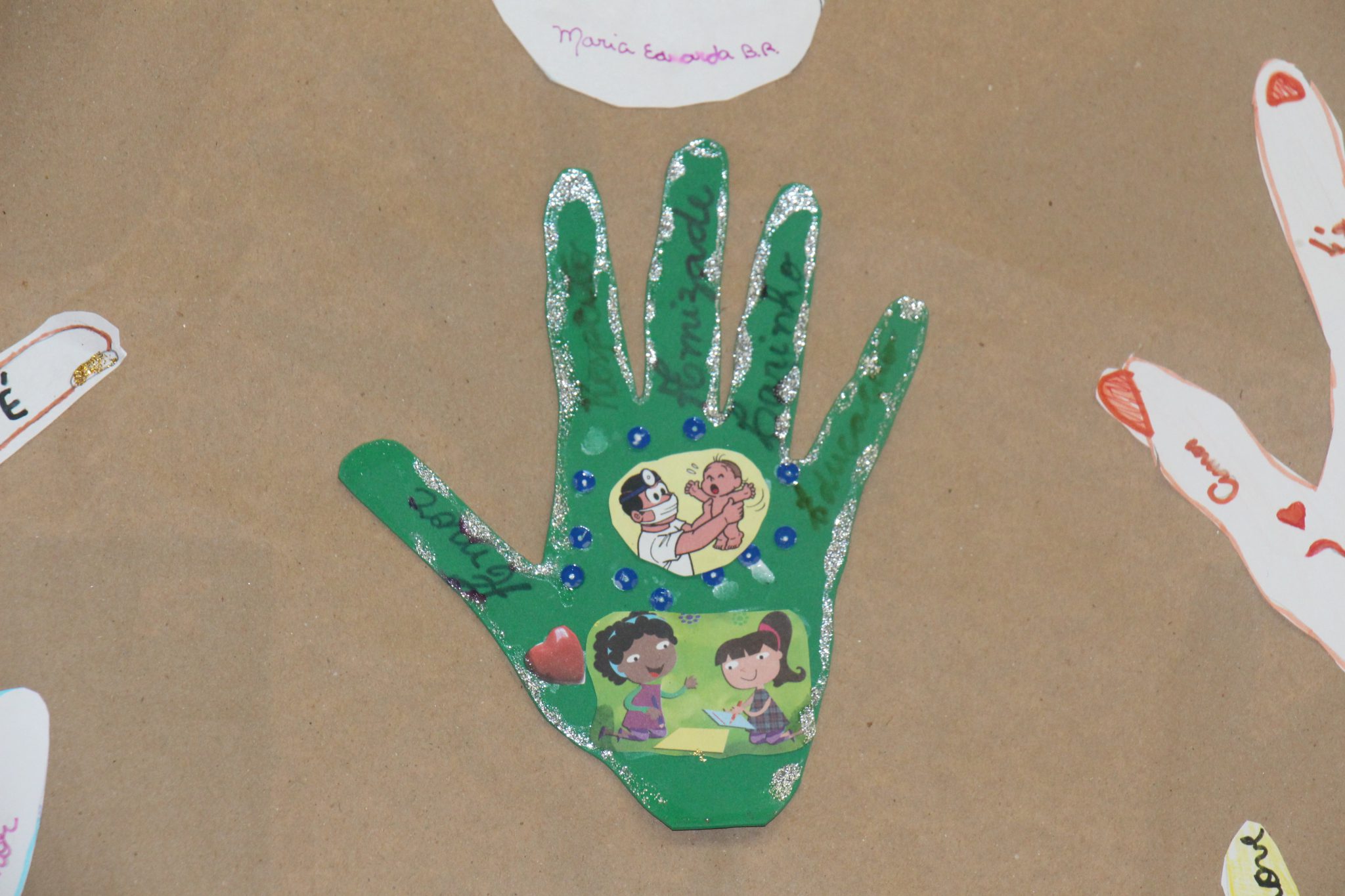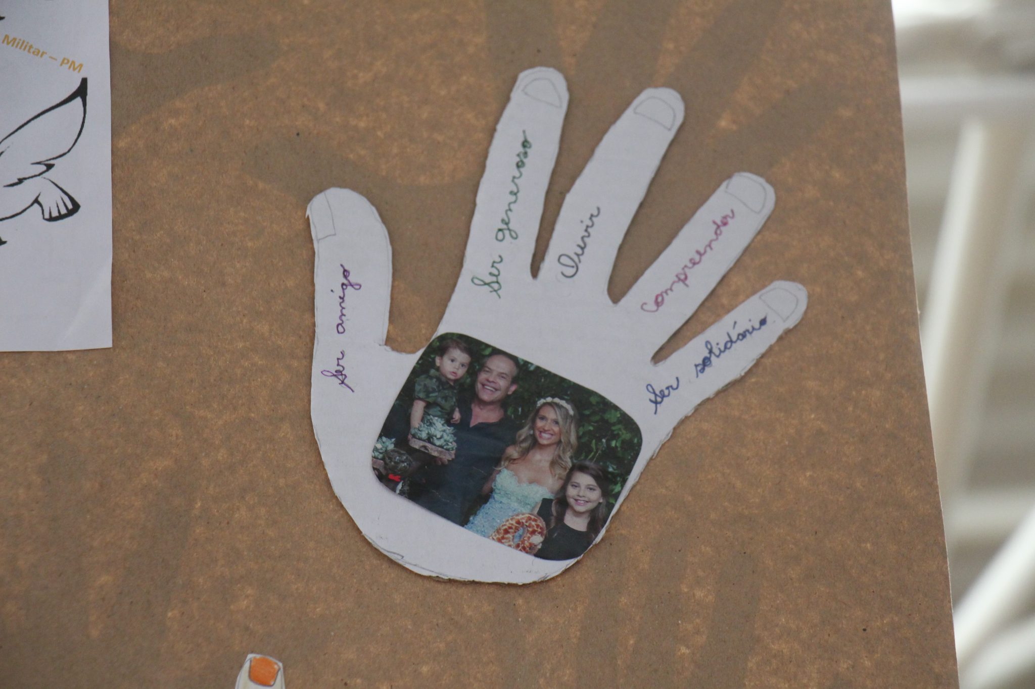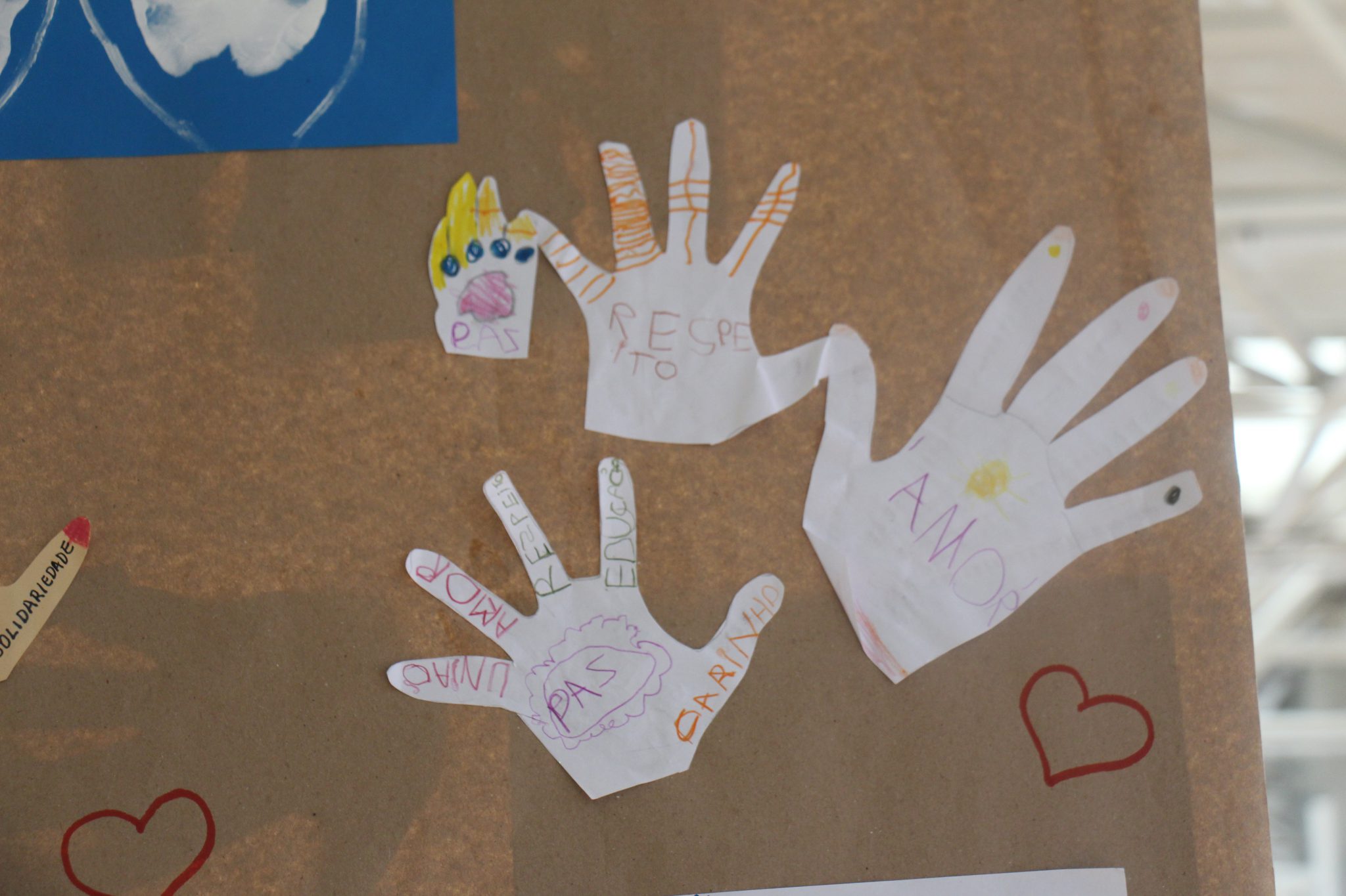 Que valores sua família acredita serem importantes para um mundo de paz? Será que não está nas mãos de cada um ajudar um pouquinho para que tenhamos uma sociedade mais fraterna? Foi a partir de indagações com essas, inspiradas no tema da CF 2018, Fraternidade e Superação da Violência, que as famílias dos alunos da Educação Infantil e do Ensino Fundamental 1 colocaram seus melhores sentimentos nas palmas de centenas de mãozinhas de papel que coloriram a entrada da escola no encerramento da Semana da Família.