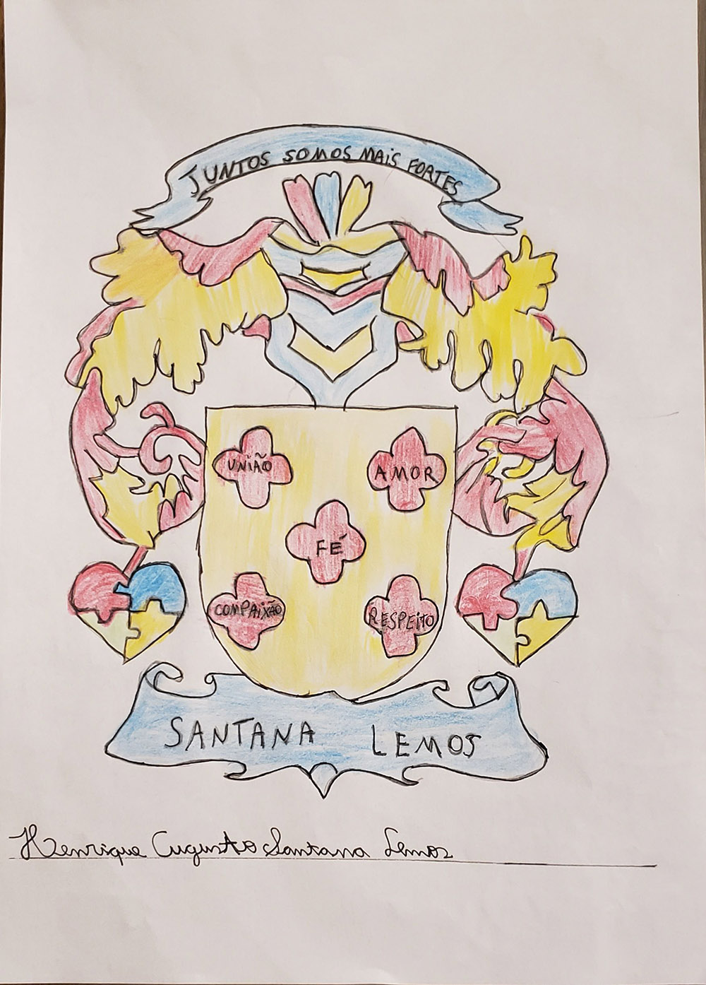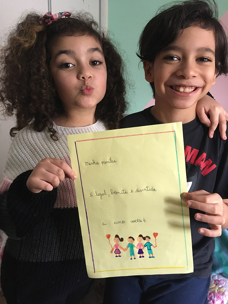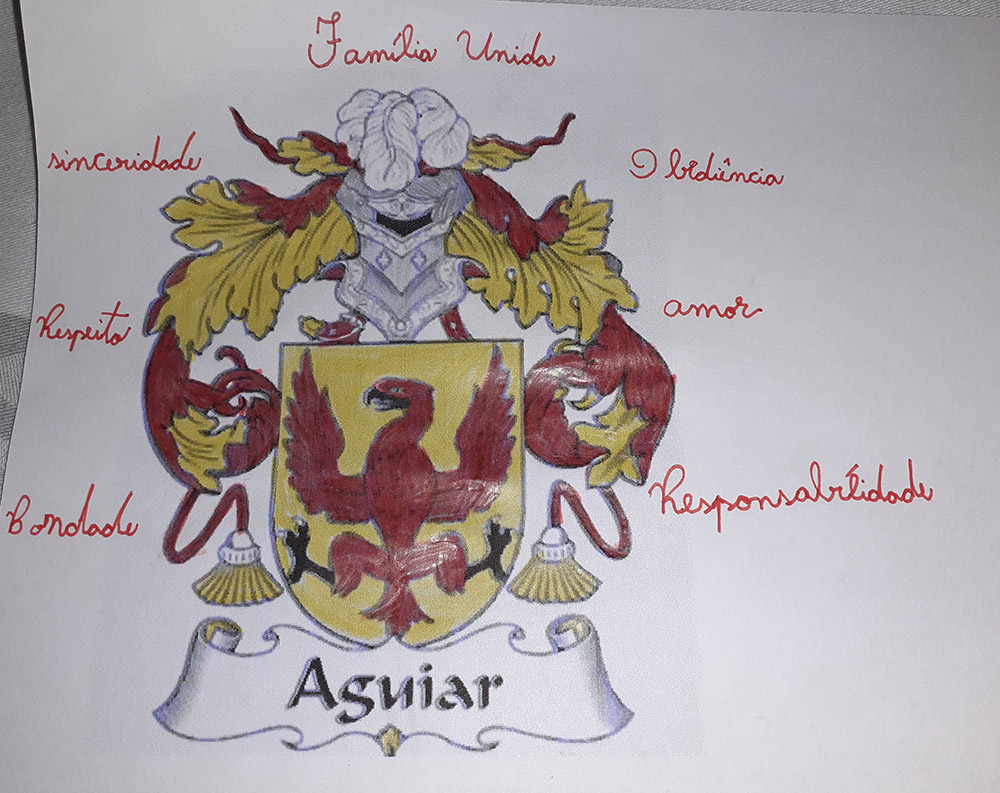 Estudantes do 1º ao 3º ano do Ensino Fundamental mostraram que existem muitos tipos de famílias e que é o amor que mantém essas pessoas unidas, cuidando umas das outras. Turmas do 4º e do 5º ano produziram brasões familiares representando os valores que sustentam a caminhada a serviço da fé e compartilharam imagens de momentos felizes vivenciados em família, em especial durante esse período de maior convivência em casa.