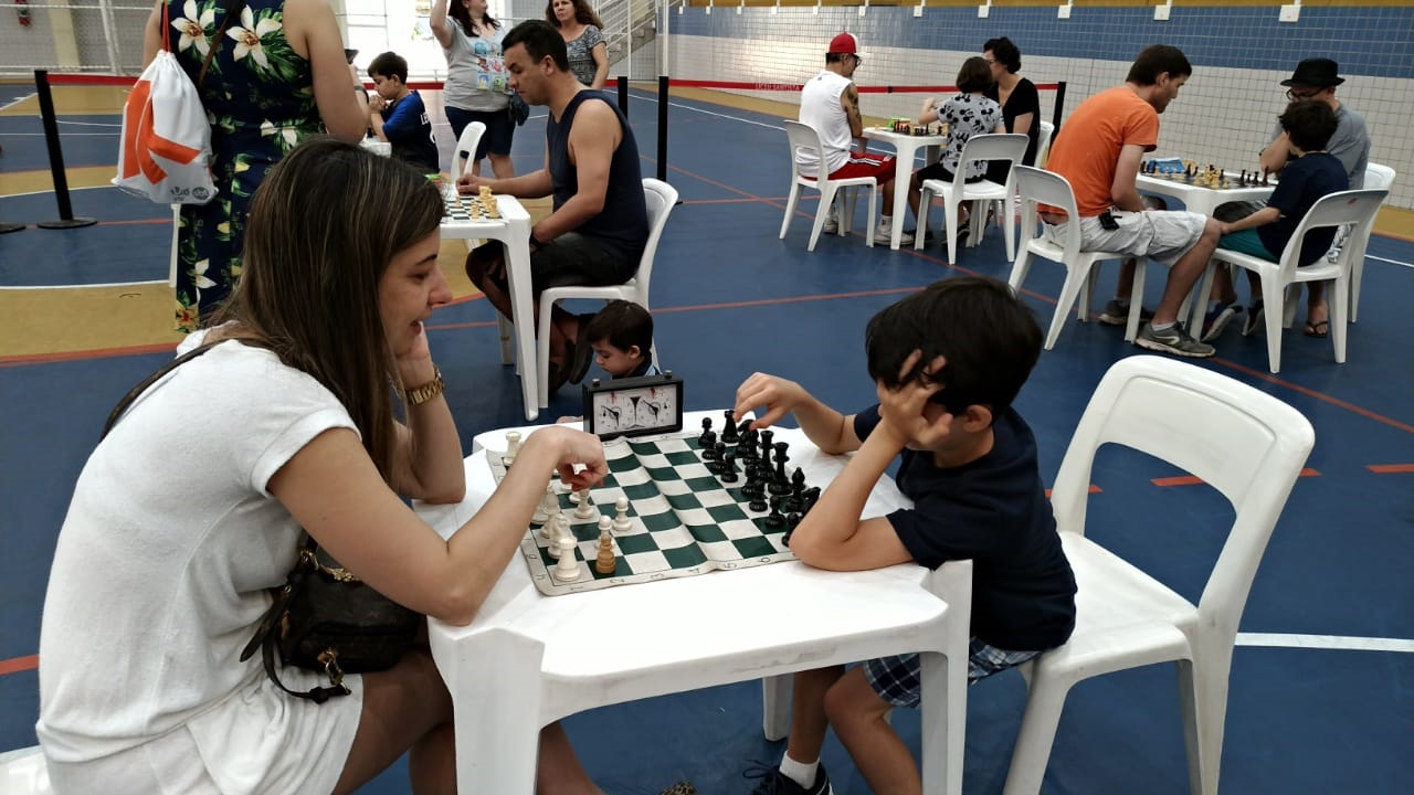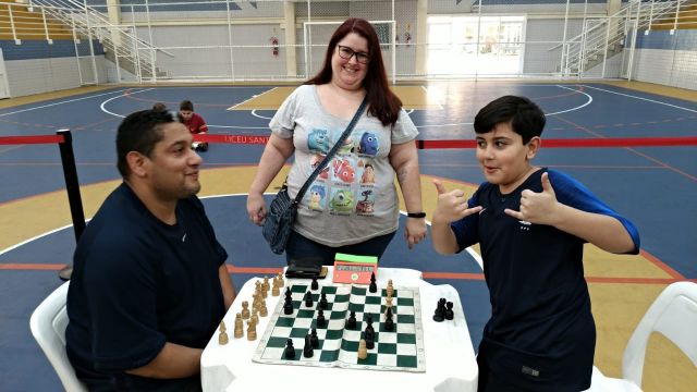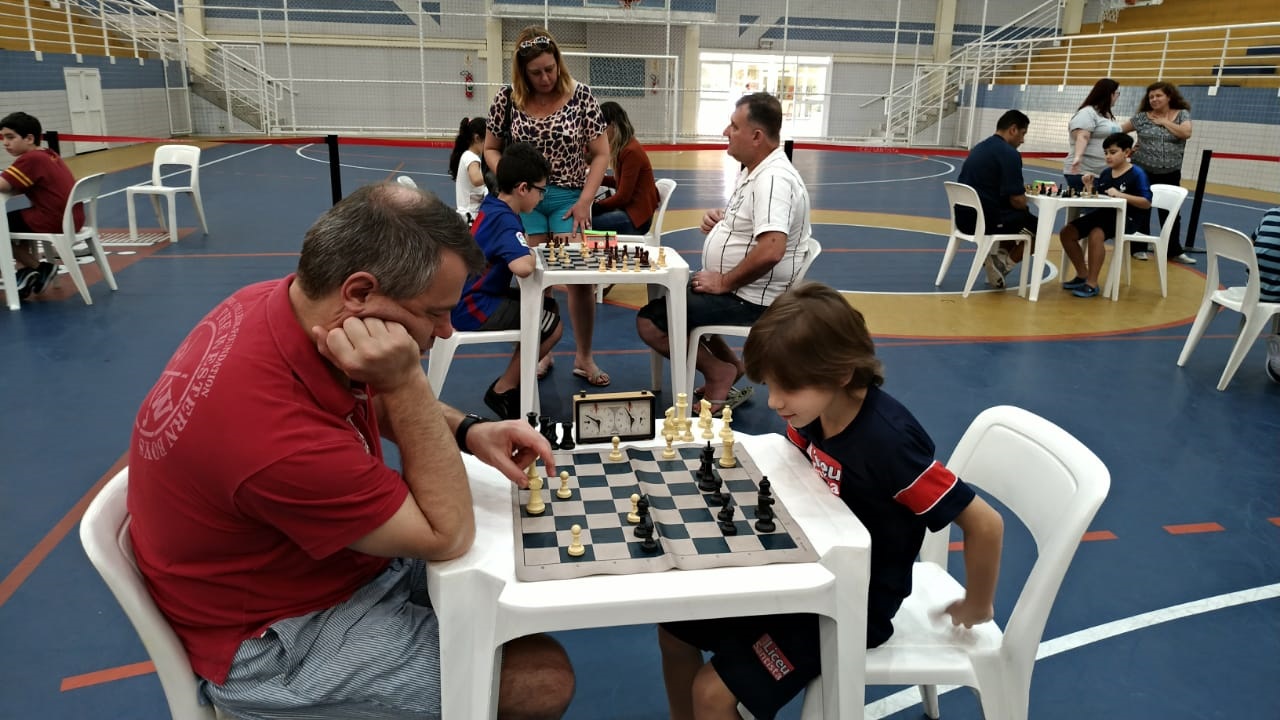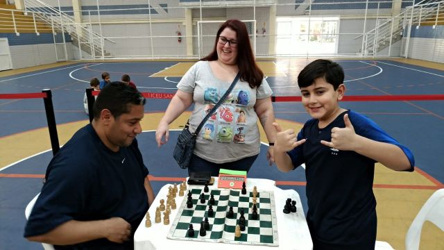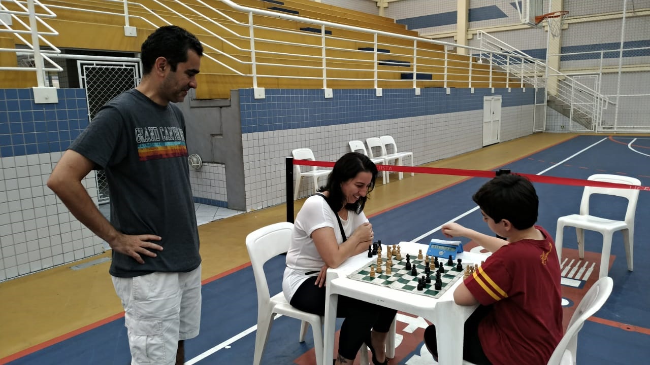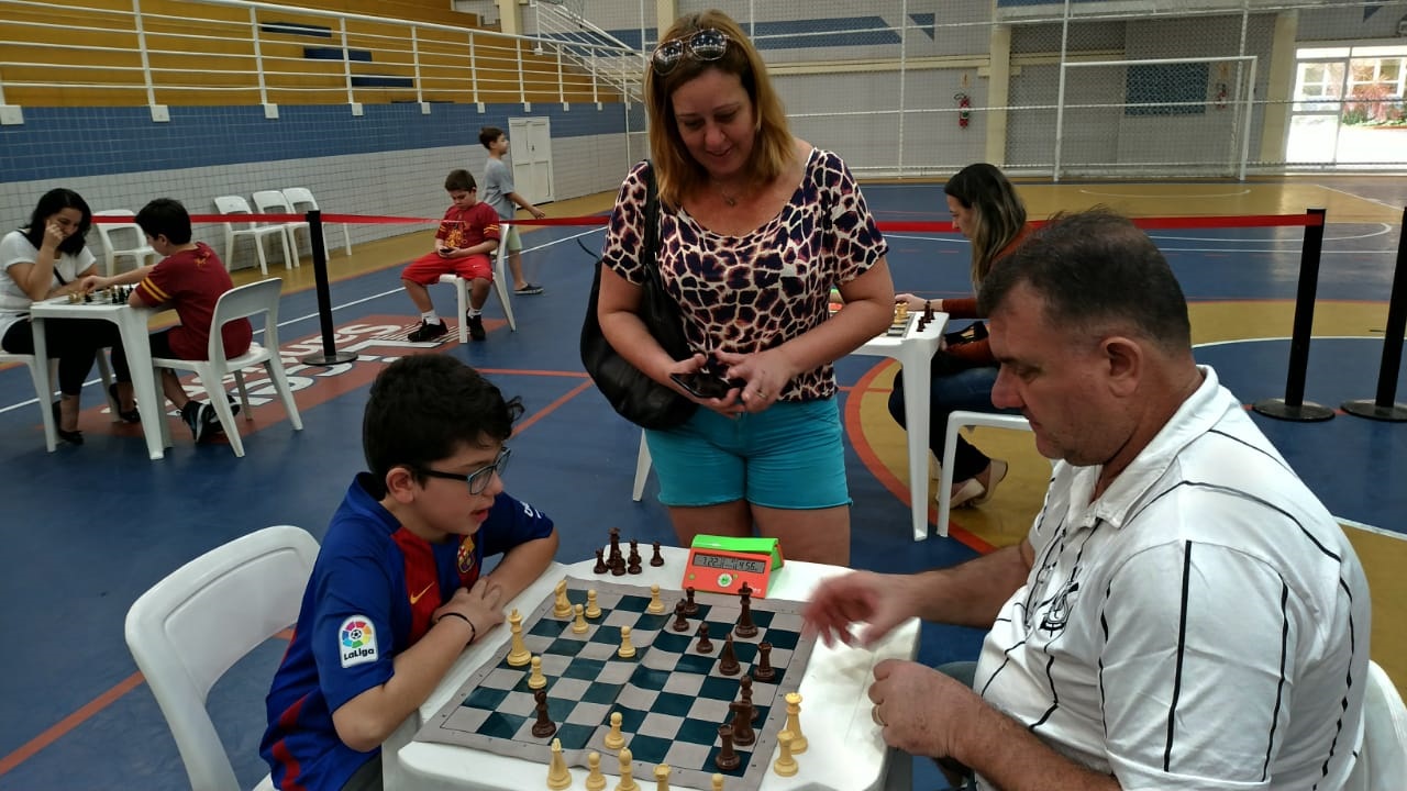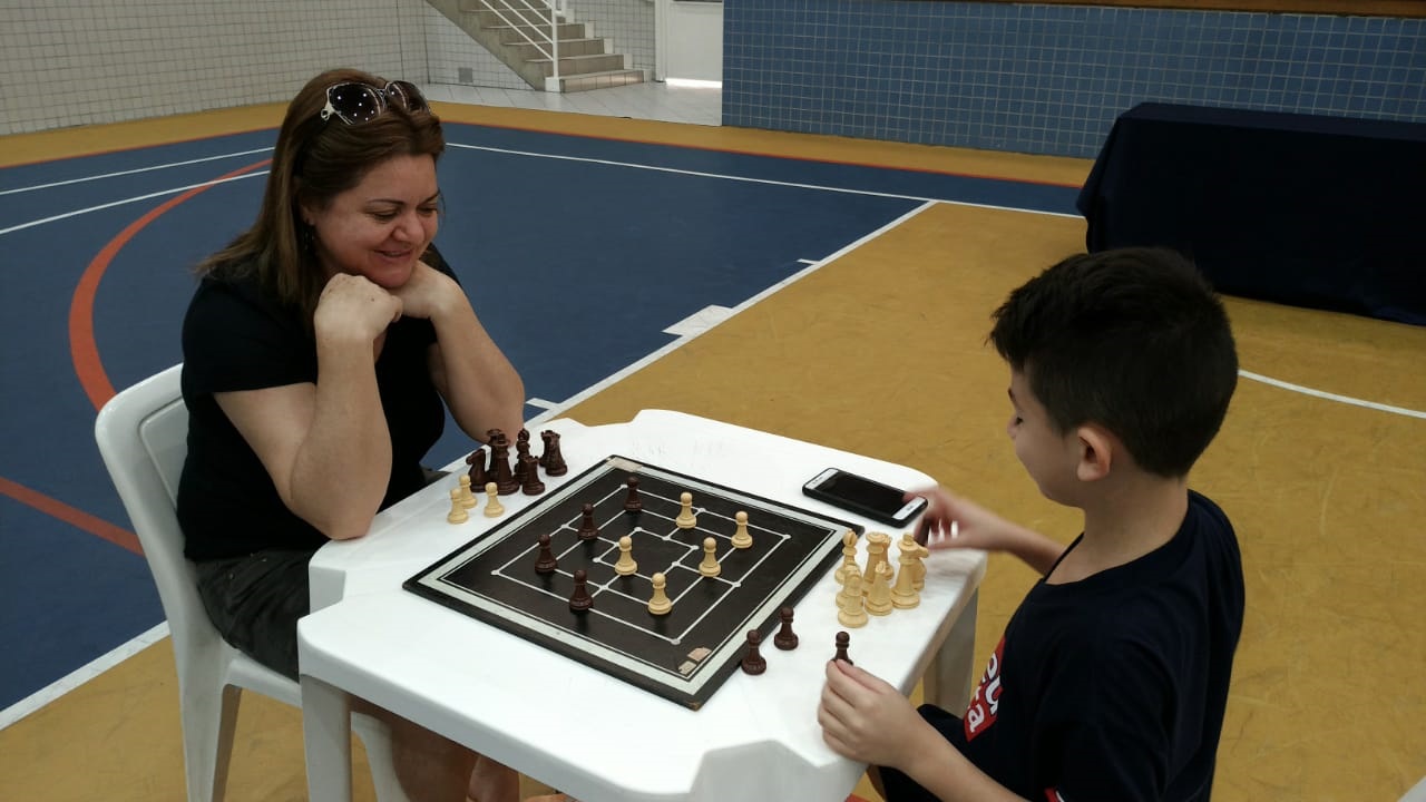 Os pais, que puderam acompanhar as partidas da arquibancada, ao final do torneio também foram convidados a dividir o tabuleiro com os filhos. Para a professora Cris, esse é um momento importante de socialização, de incentivo e mesmo de diversão.
