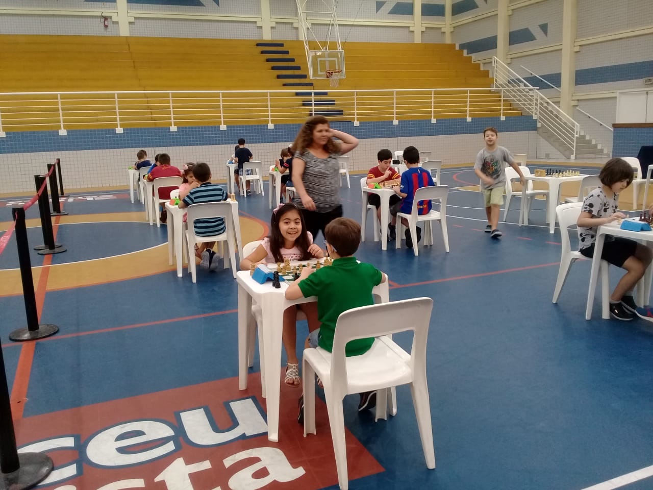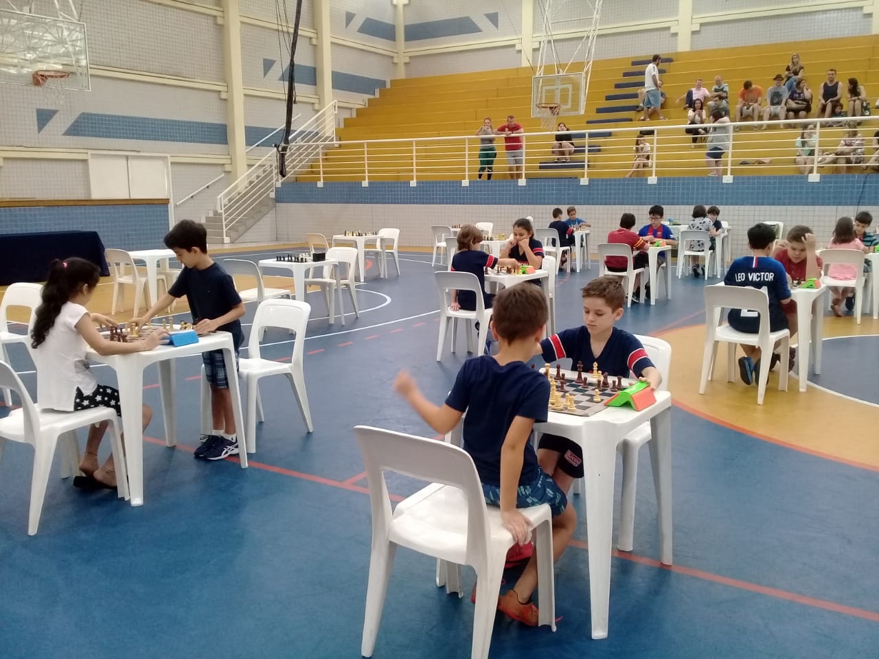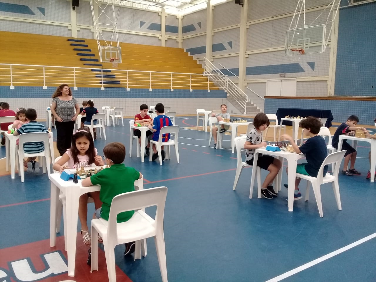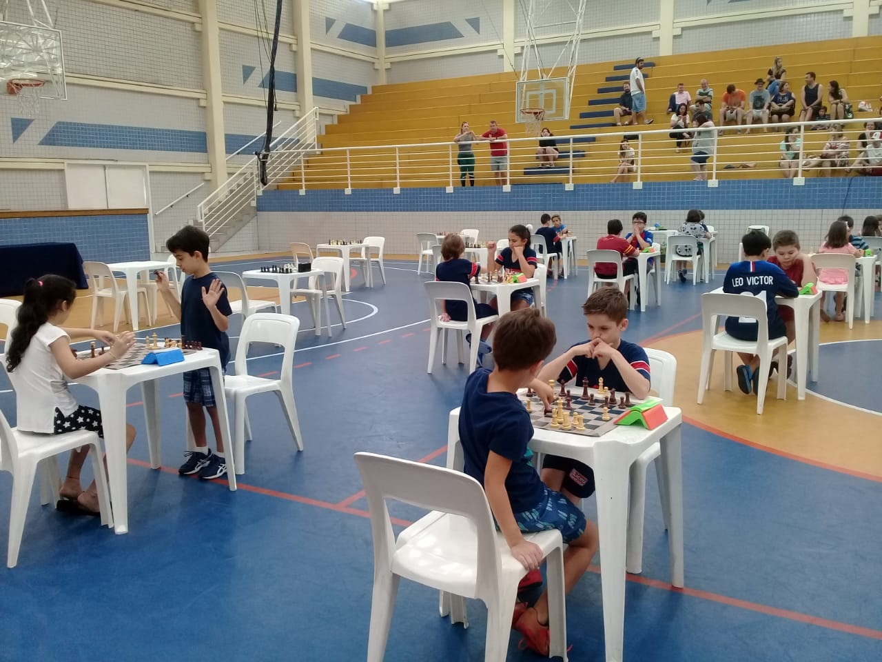 Os pais, que puderam acompanhar as partidas da arquibancada, ao final do torneio também foram convidados a dividir o tabuleiro com os filhos. Para a professora Cris, esse é um momento importante de socialização, de incentivo e mesmo de diversão.