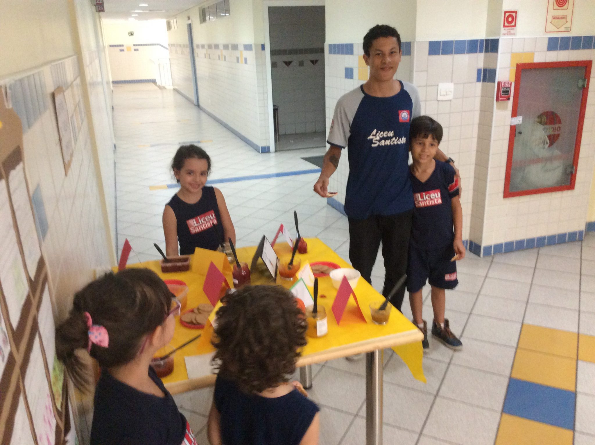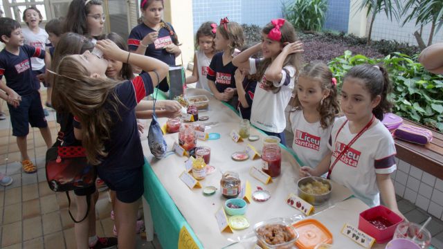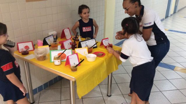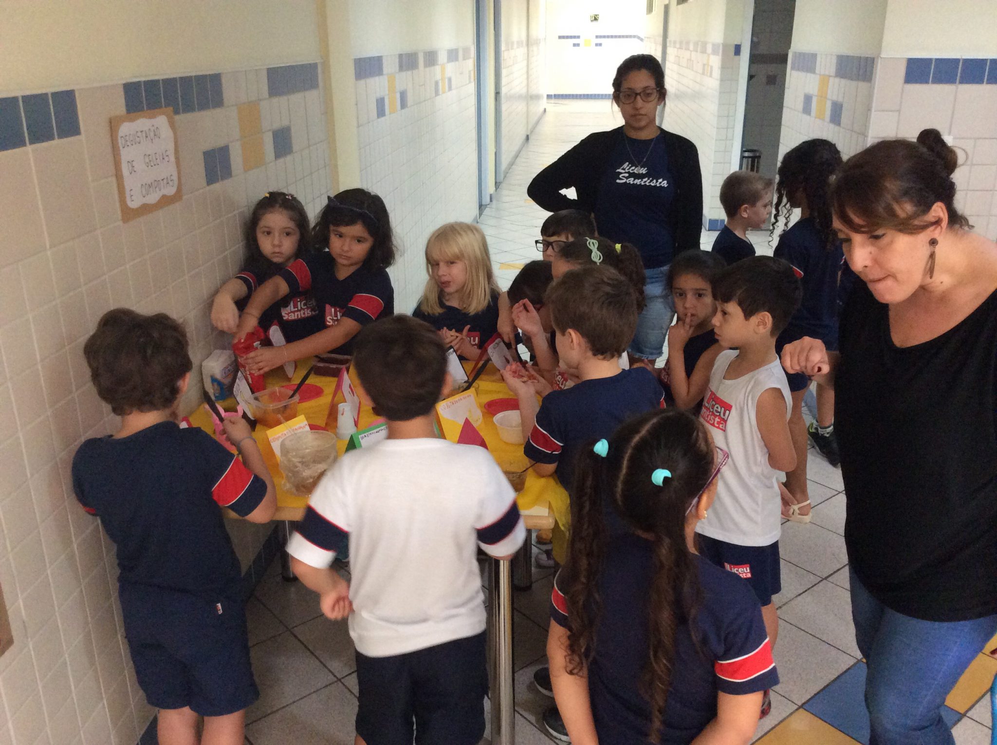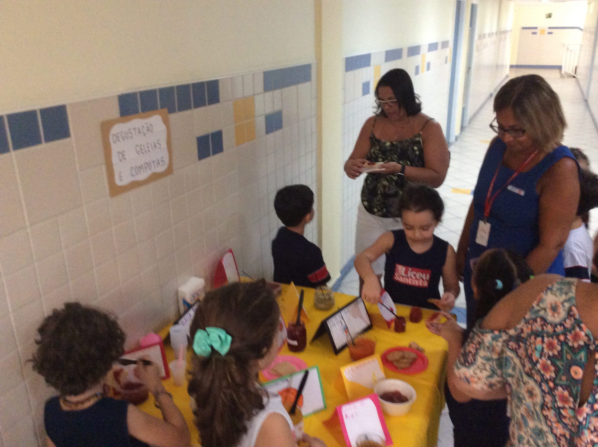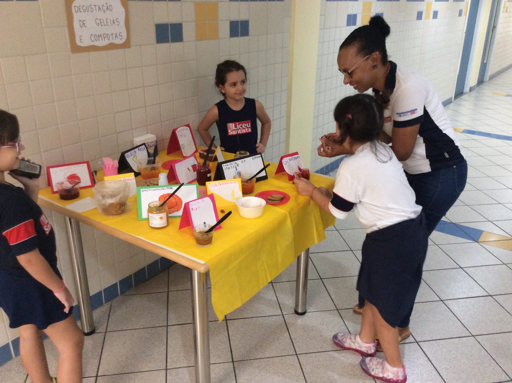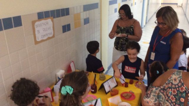Ao estudar esse tópico, 11 e convidados na escola. O resultado foi uma mesa de colorida composição de potinhos. As crianças tiveram a oportunidade de experimentar geleias e compotas de manga, morango, banana, pêssego, abóbora com coco, abacaxi entre outras.