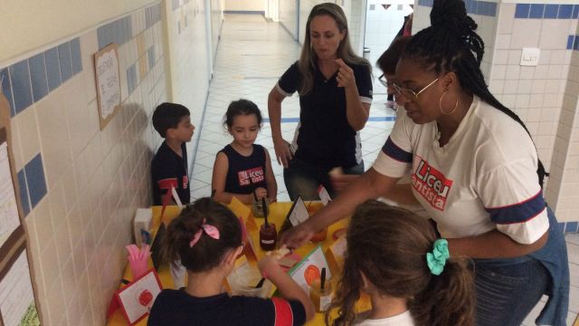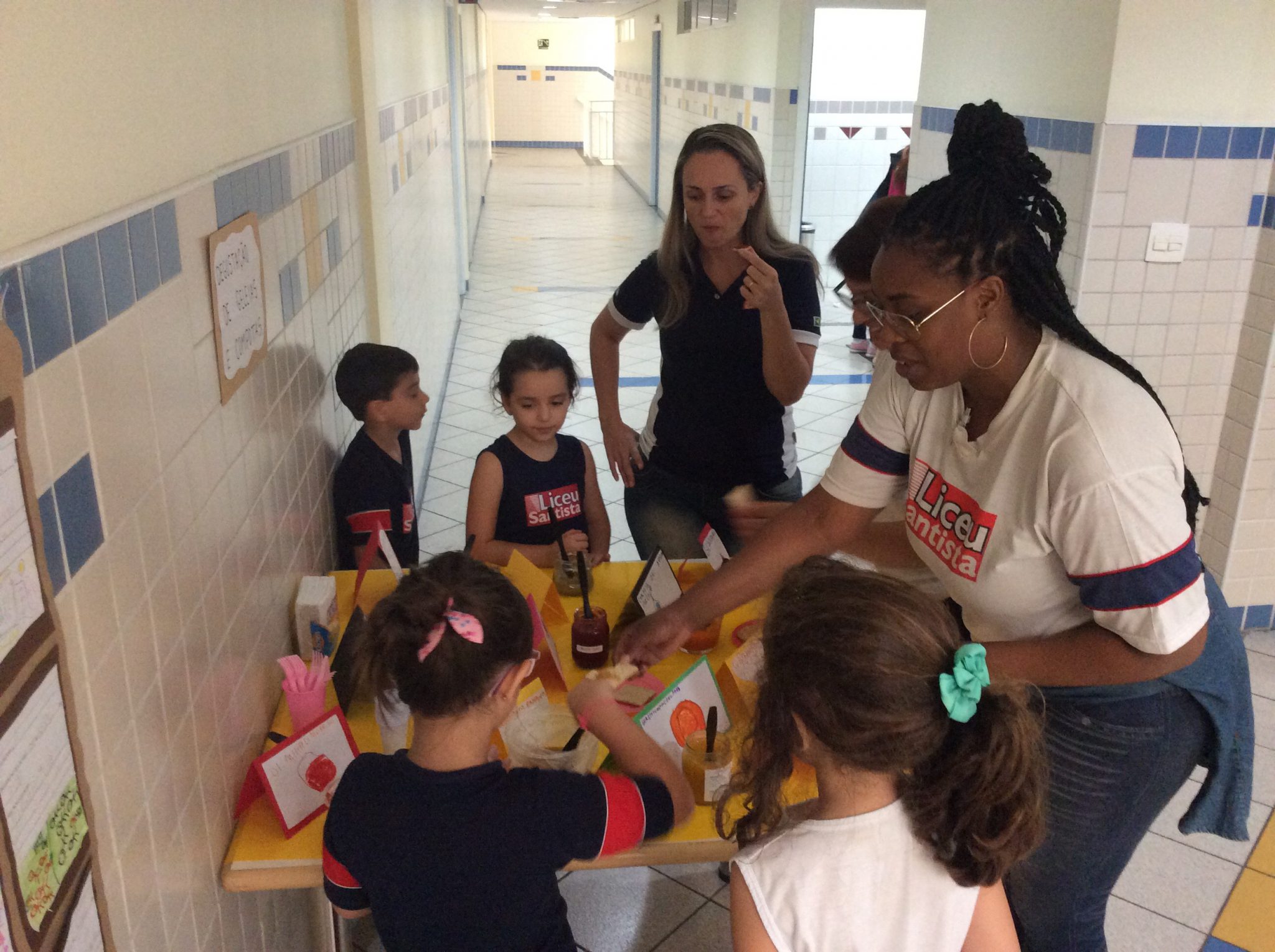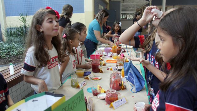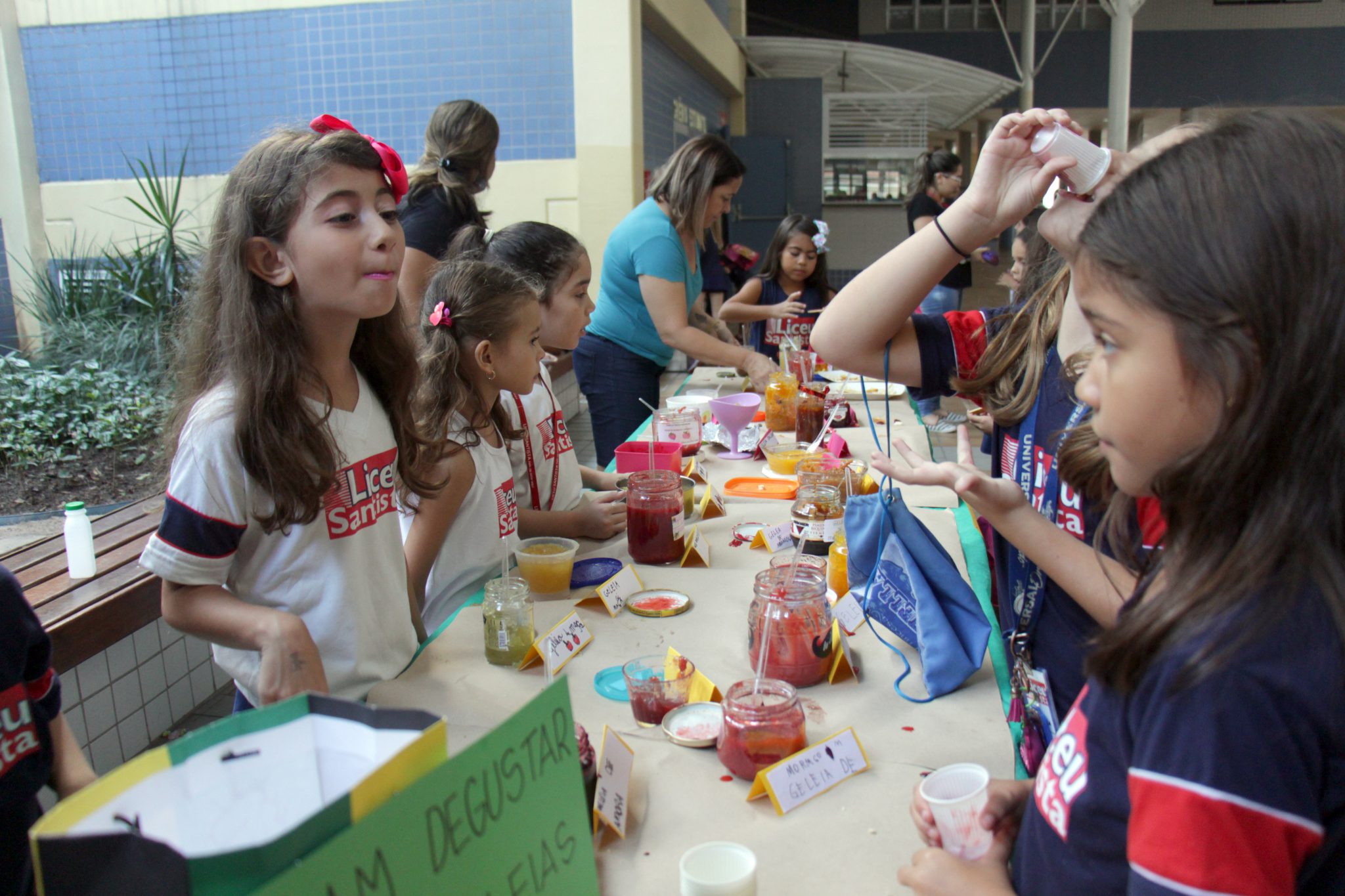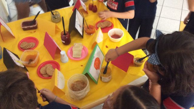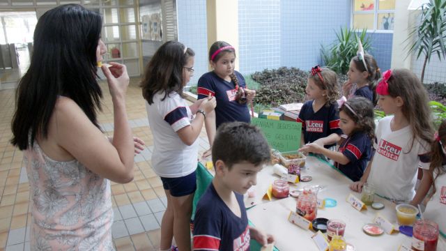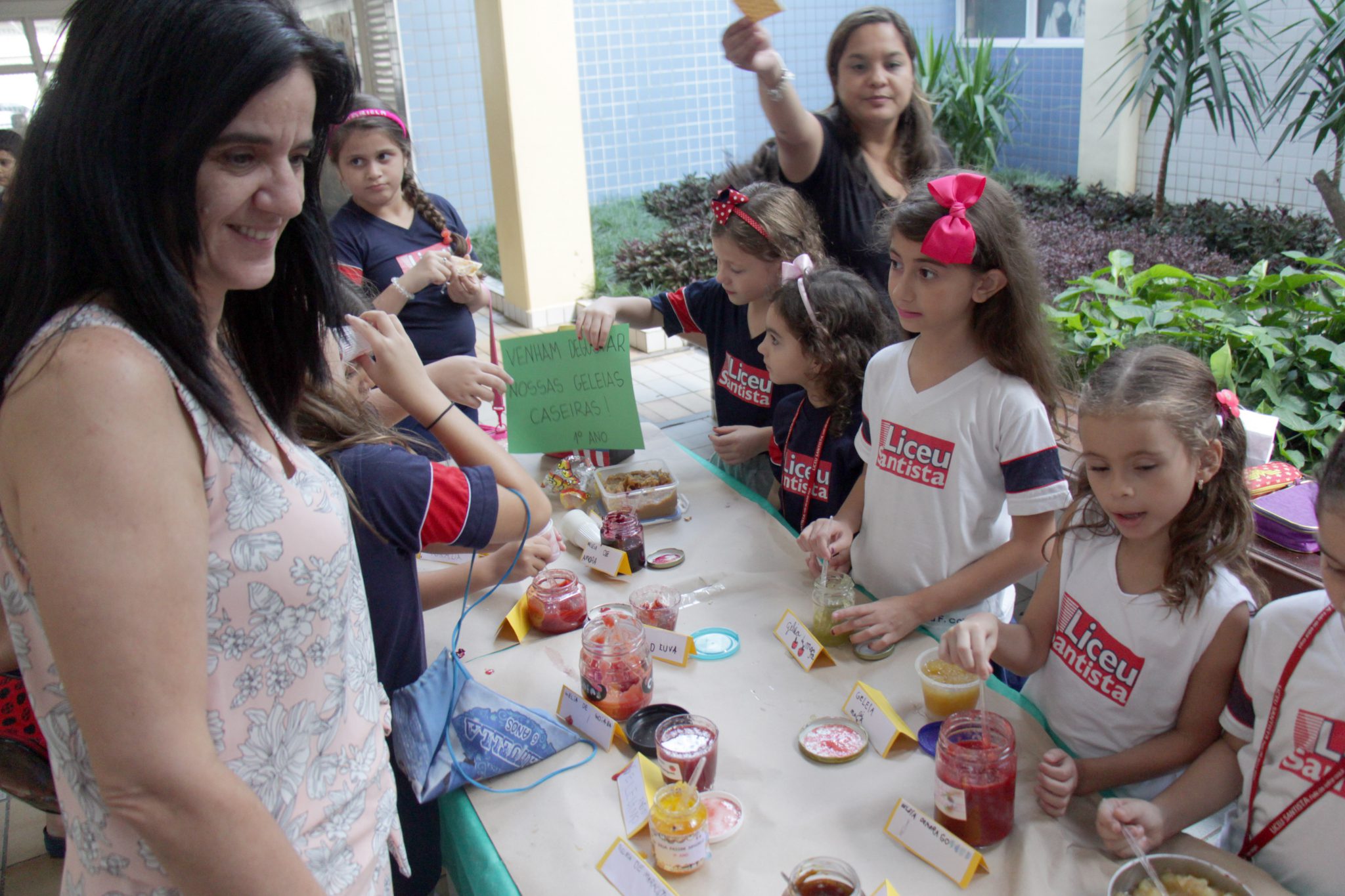 Ao estudar esse tópico, 11 e convidados na escola. O resultado foi uma mesa de colorida composição de potinhos. As crianças tiveram a oportunidade de experimentar geleias e compotas de manga, morango, banana, pêssego, abóbora com coco, abacaxi entre outras.