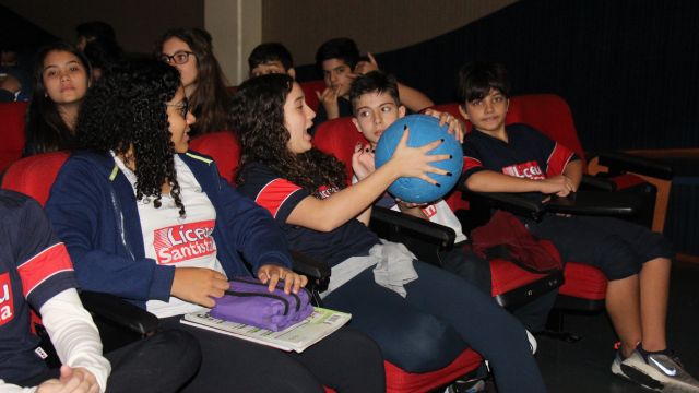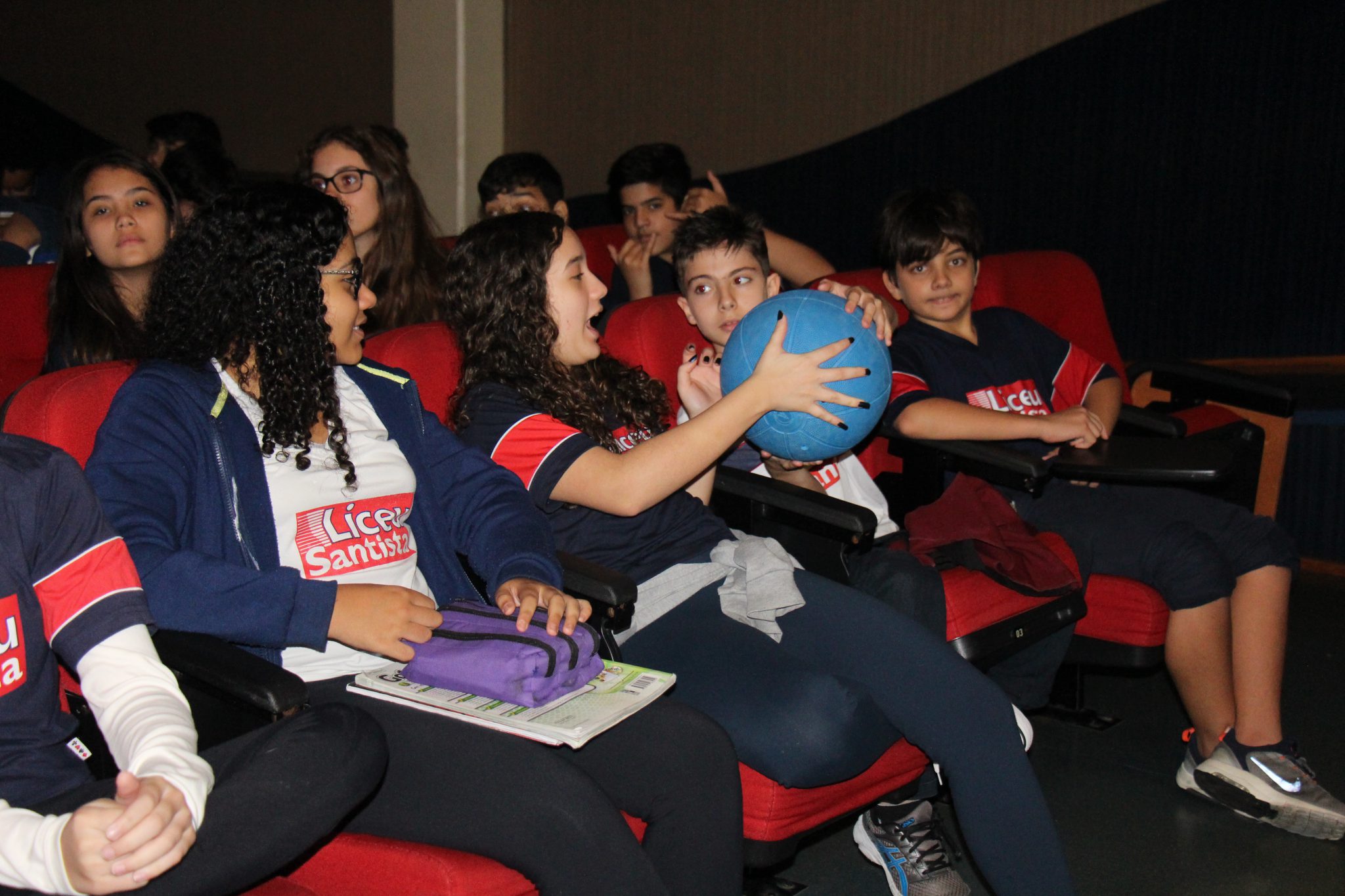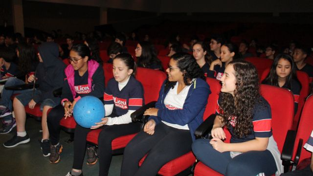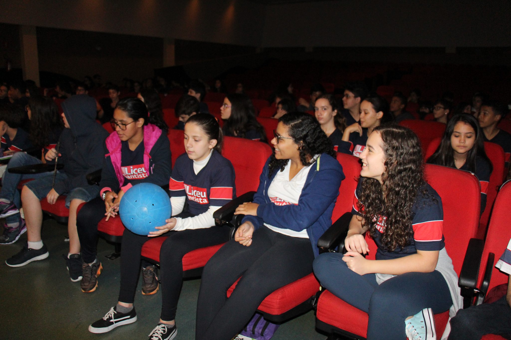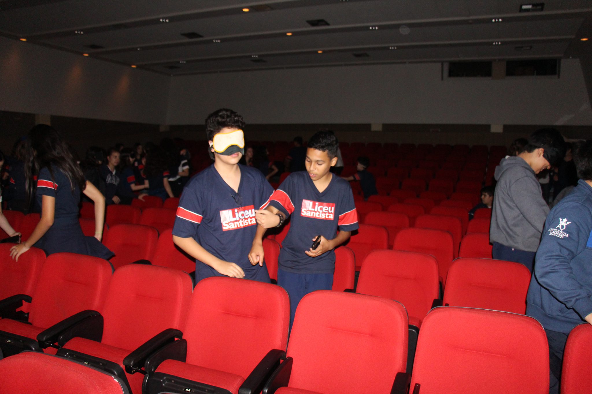 Outros alunos também tiveram a oportunidade de vivenciar como é guiar uma pessoa cega e ser guiado por alguém. As duplas transitaram pelo auditório e puderam perceber a importância da confiança no outro e o respeito mantido entre ambos. Também conheceram uma bola de golbol, que possui guizos para que os atletas cegos e/ou de baixa visão possam ouvi-la durante o jogo.